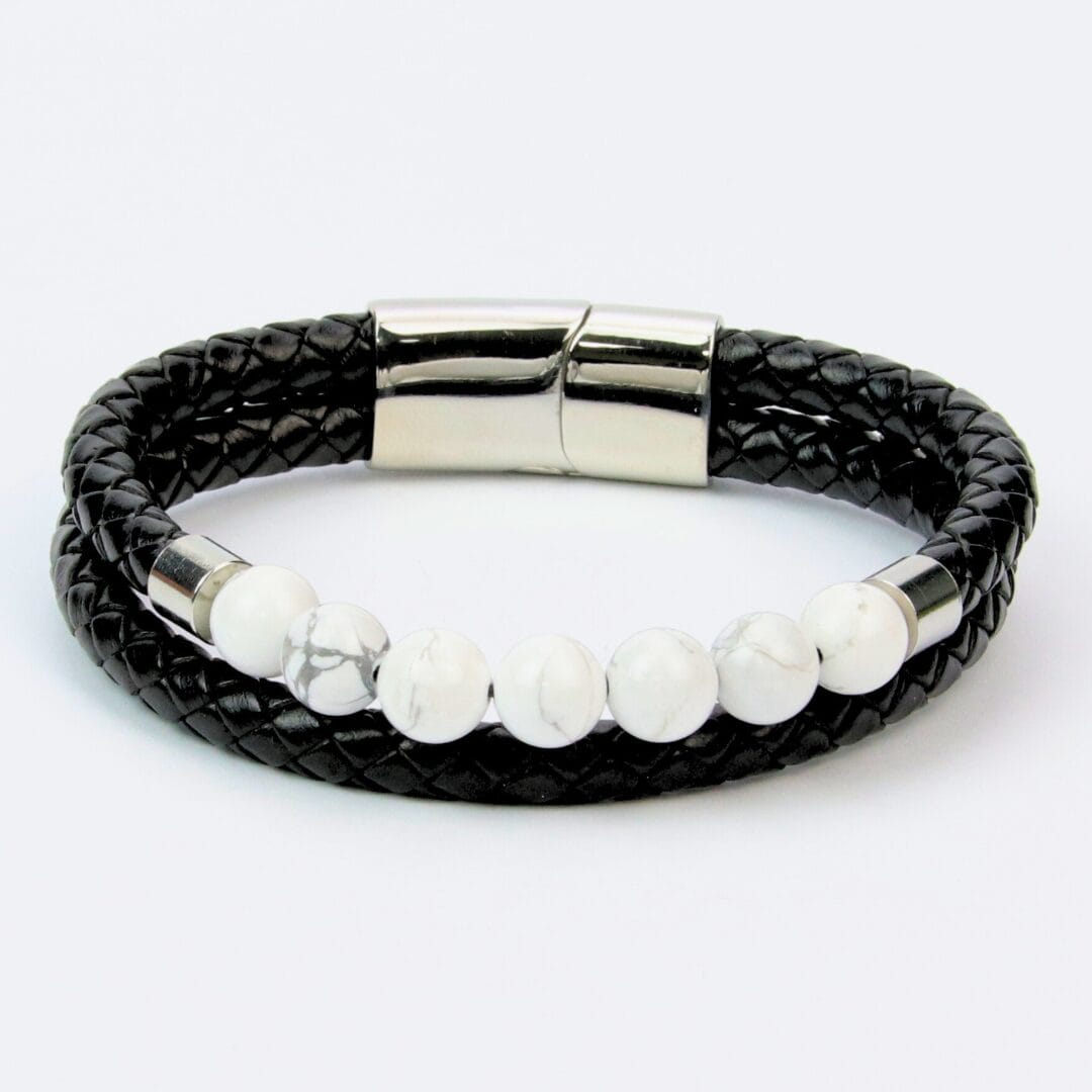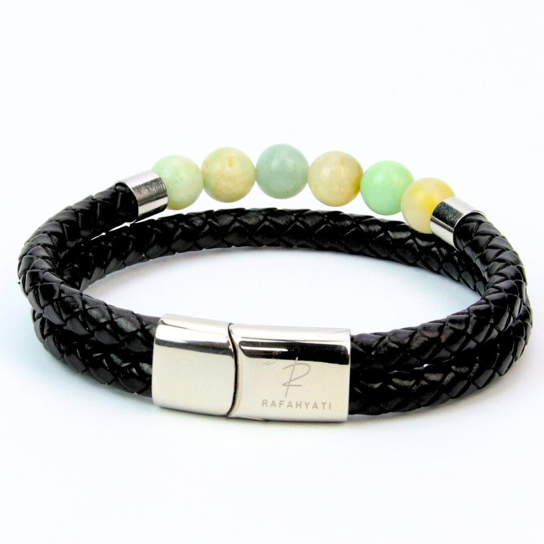 Bracelet Rafahyati Cuir Véritable & Perles Noires en Onyx