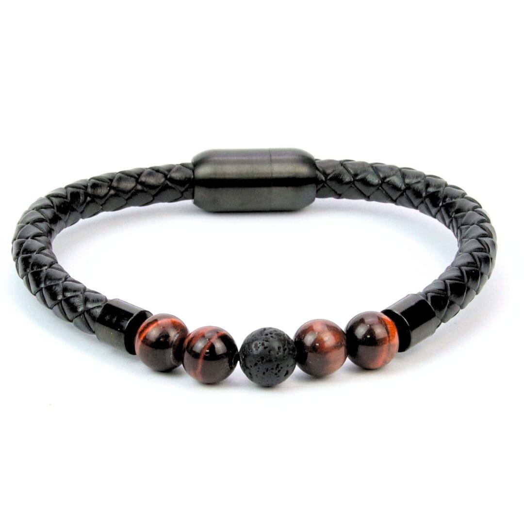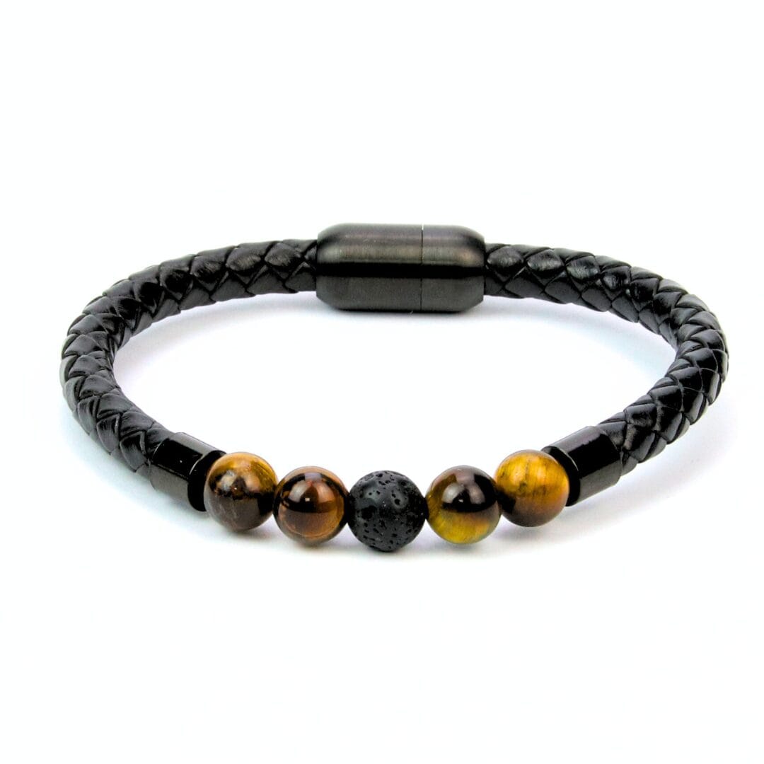 Bracelet Noire Œil de Tigre & Pierre de Lave