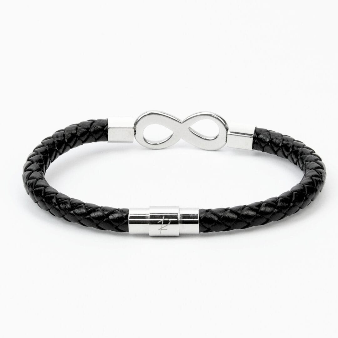 Bracelet Infini en Cuir Noir Tressé