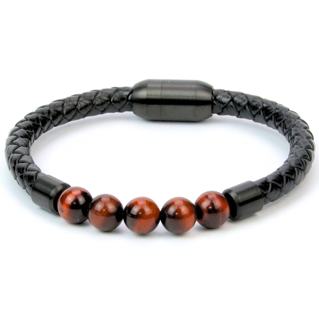 Bracelet Homme Rafahyati –Perles Œil de Tigre Rouge