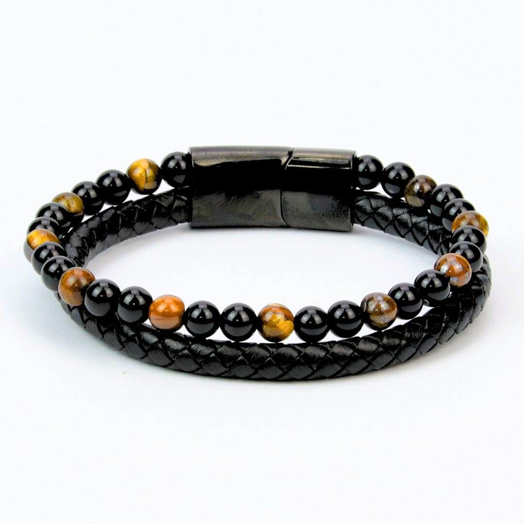 Bracelet Rafahyati Pierres Naturelles Noir et Œil de Tigre