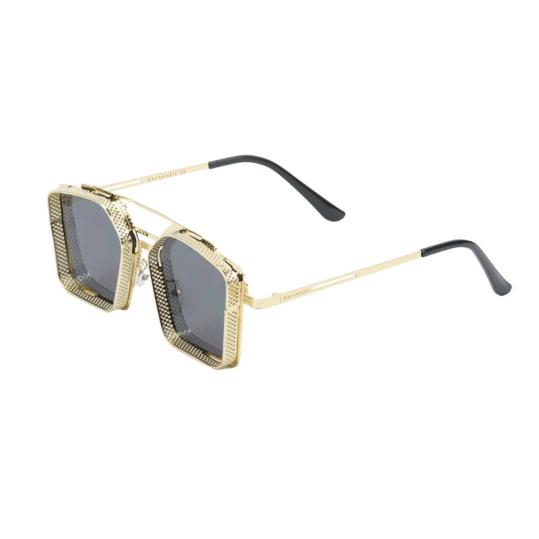 Affirmez votre style avec ces lunettes de soleil iconiques signées Rafahyati. Leur silhouette géométrique unique à forme carrée, associée à une monture en métal doré texturé, crée un équilibre parfait entre audace architecturale et raffinement intemporel. Ce modèle est conçu pour les personnalités affirmées en quête d’un accessoire de caractère et de distinction.