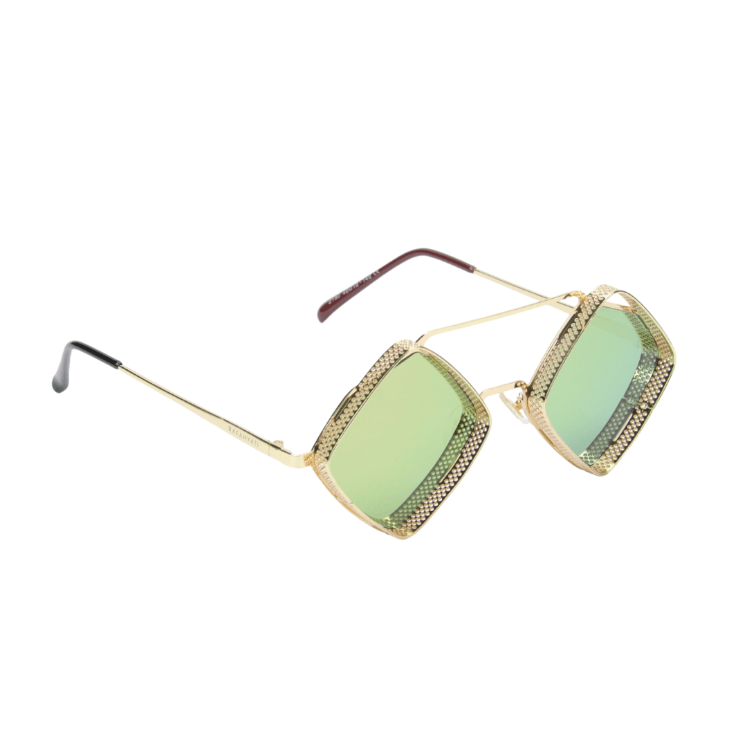 Affirmez votre style avec audace grâce à ces lunettes de soleil uniques de la collection Rafahyati. Leur forme carrée oversize et leur finition dorée texturée leur confèrent un caractère distinctif, parfait pour celles et ceux qui aiment se démarquer avec élégance.