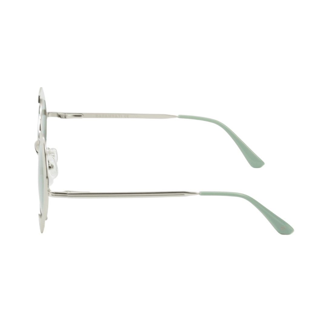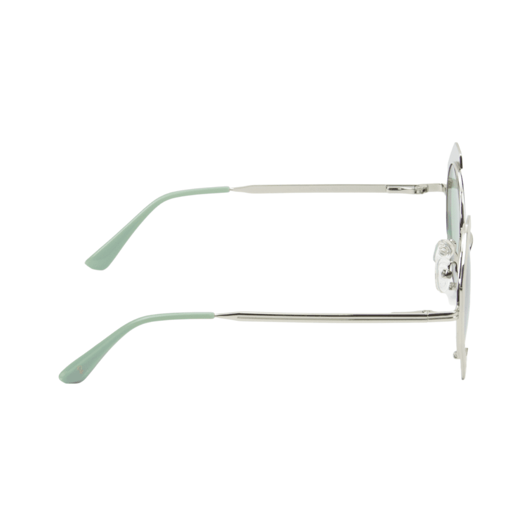• Branches : Élégantes et épurées en métal avec des embouts en acétate vert pastel pour un maintien parfait.