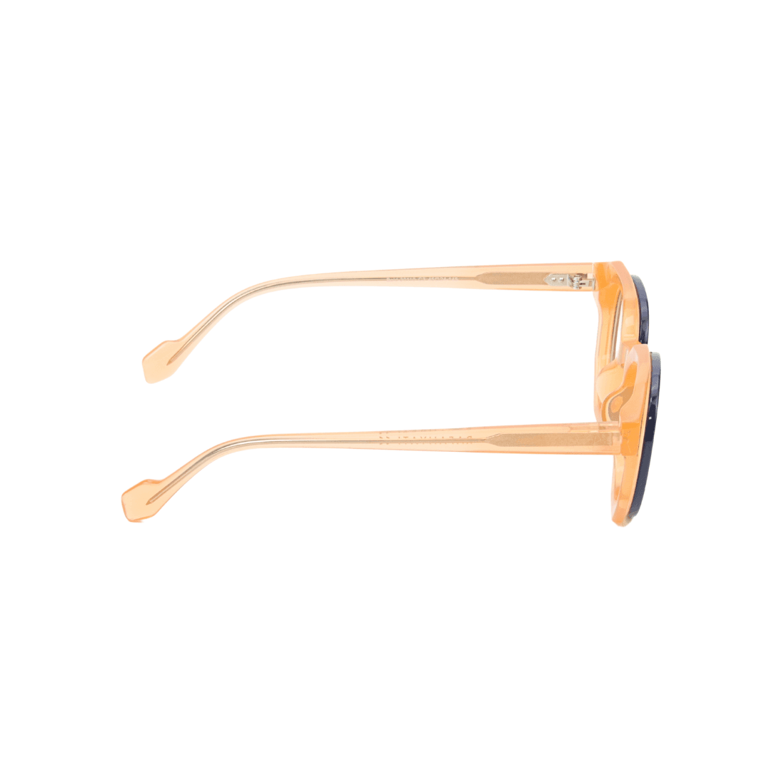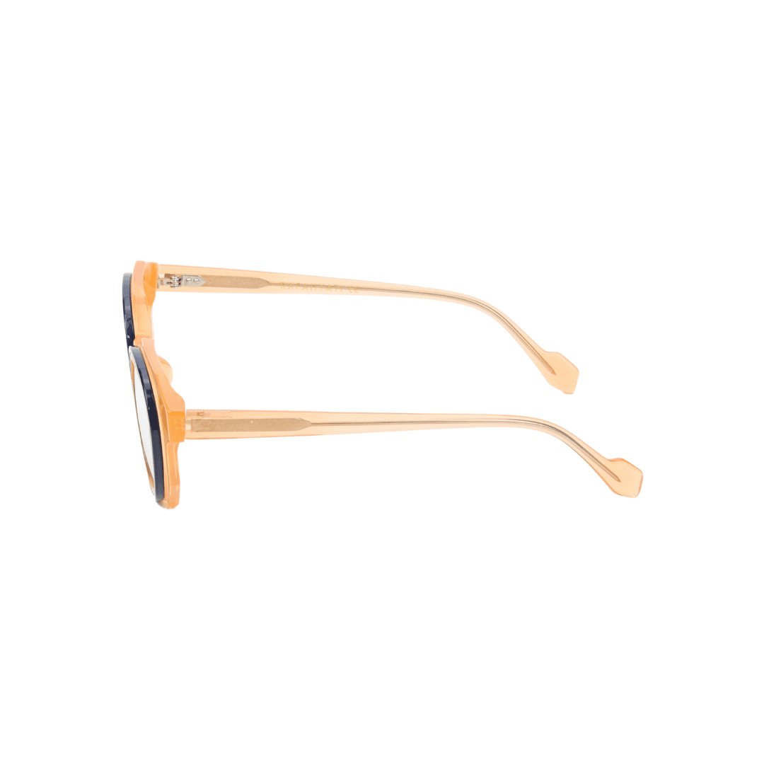 - Design : Monture rectangulaire en acétate translucide ambre avec un contour bleu marine, pour un look unique et raffiné.