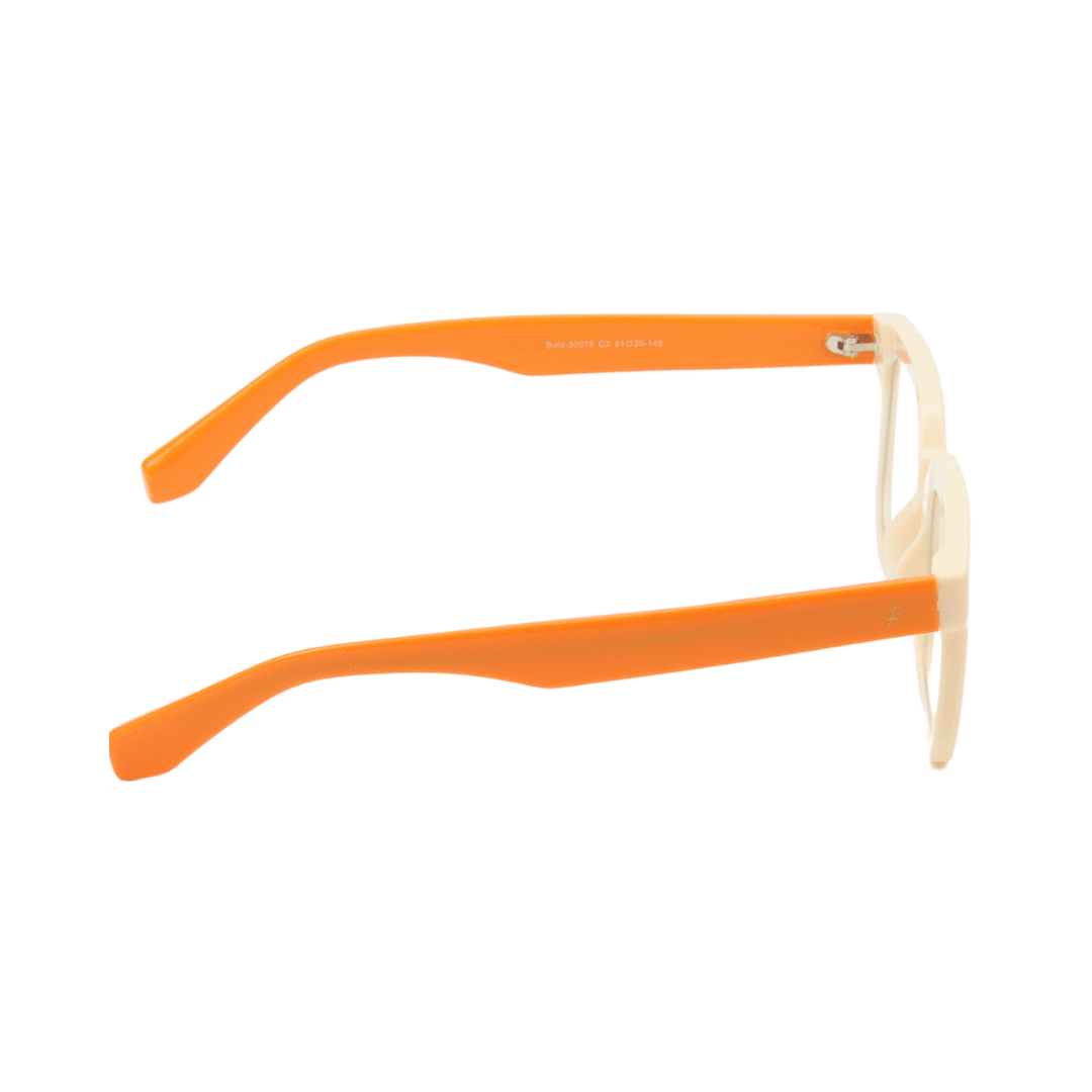 • Design : Monture rectangulaire au design minimaliste, avec une finition ivoire et des branches orange vif pour une allure affirmée.