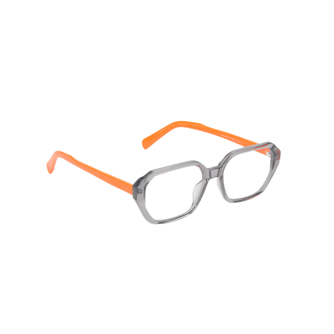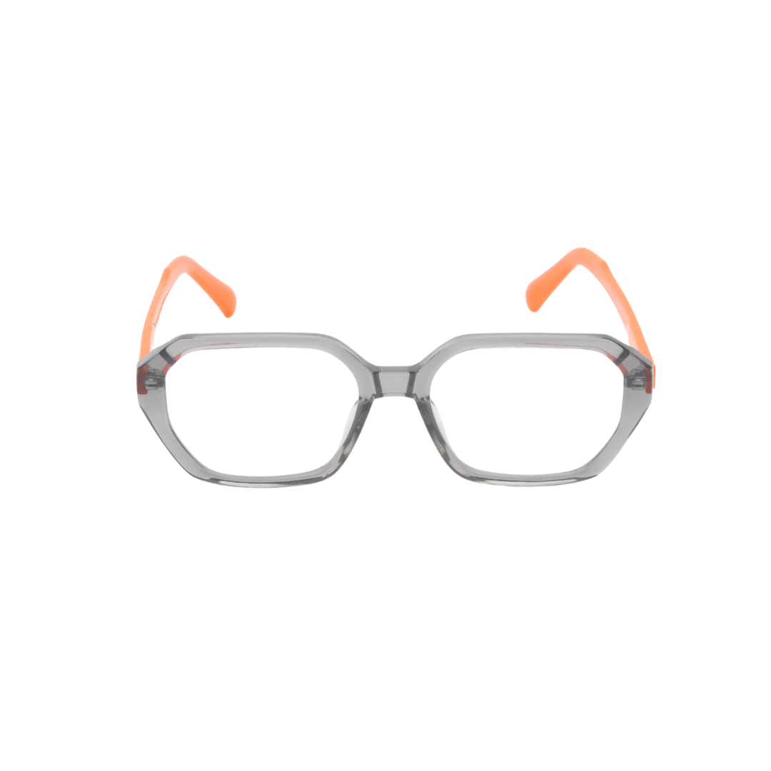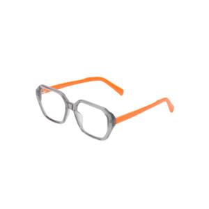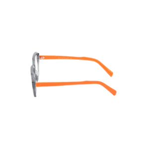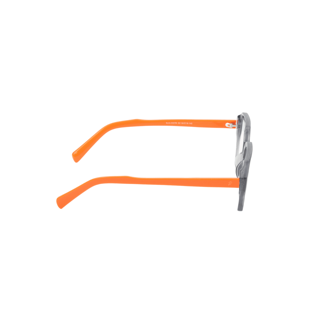 Branches orange éclatant en acétate, apportant une touche de dynamisme et de singularité à la silhouette de la monture.