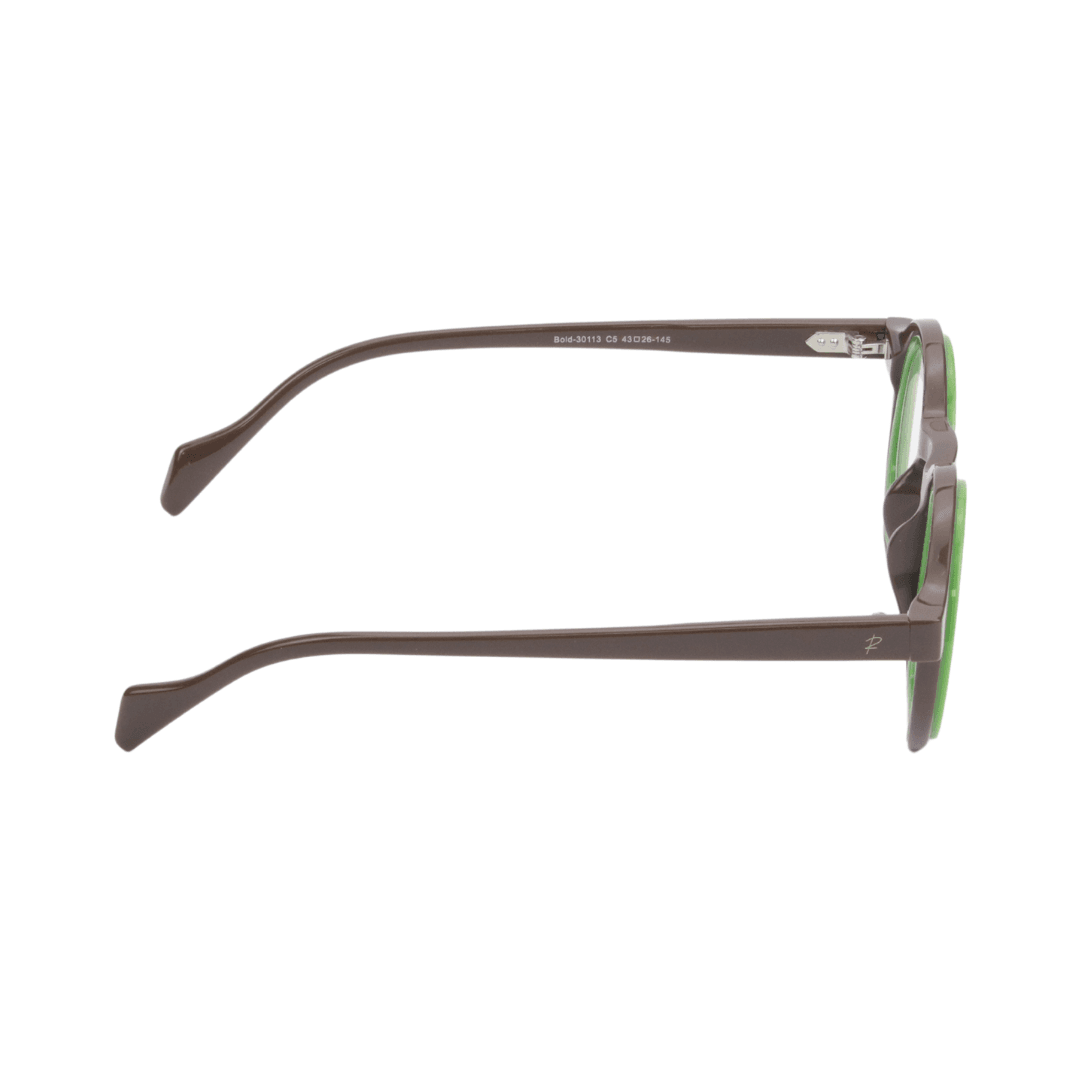 - Design : Monture ronde avec une finition marron et vert, parfaite pour un look moderne et affirmé.
