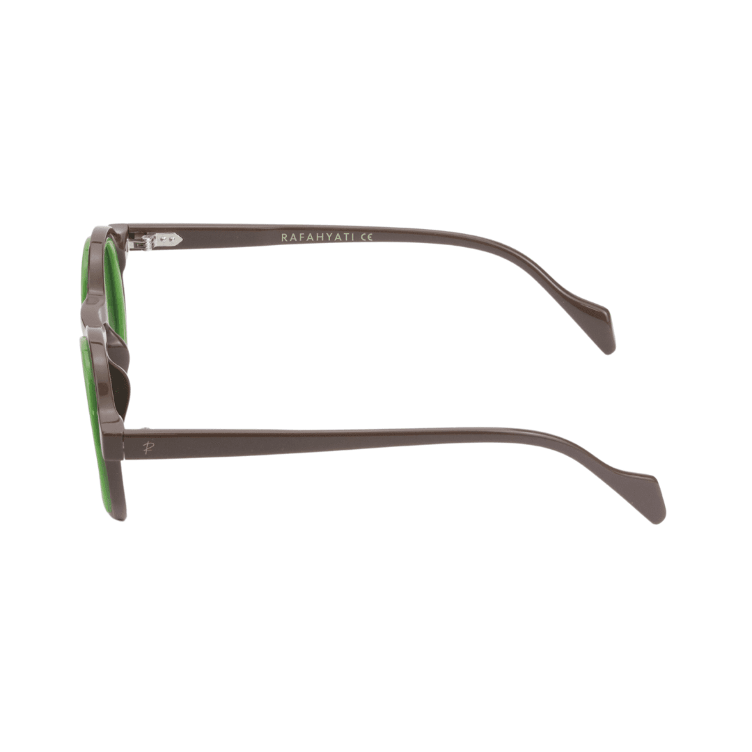 Affirmez votre style avec ces lunettes de soleil Rafahyati, conçues pour ceux qui osent se démarquer. Leur design round (rond), combiné à une monture marron et un cerclage vert vibrant, offre une allure audacieuse et moderne.