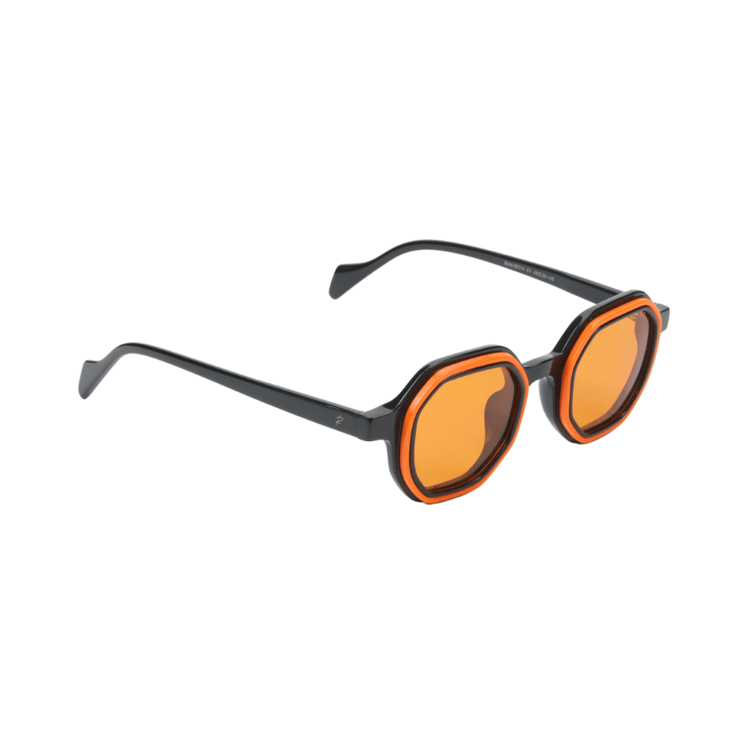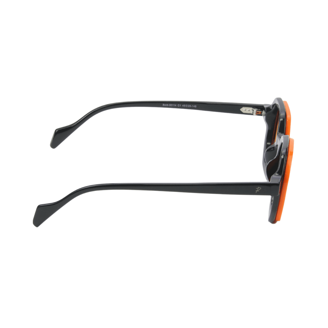 • Design : Monture octogonale noire avec un cerclage orange contrastant, alliant modernité et caractère.