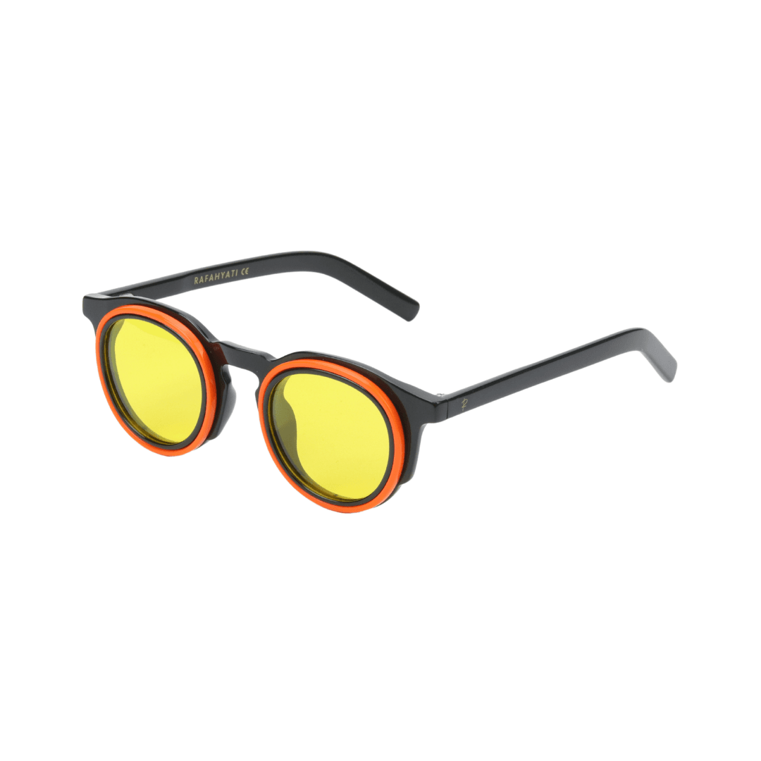 • Design : Monture ronde noire avec un contour orange vibrant, idéal pour un style moderne et affirmé.