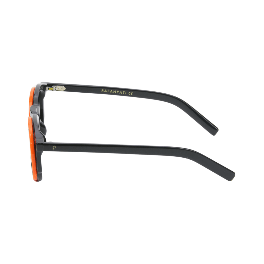 Affirmez votre style avec ces lunettes de soleil Rafahyati, un parfait mélange d’audace et de raffinement. Leur design rond distinctif, associé à une monture noire et des détails orange, apporte une touche dynamique et originale à votre look.
