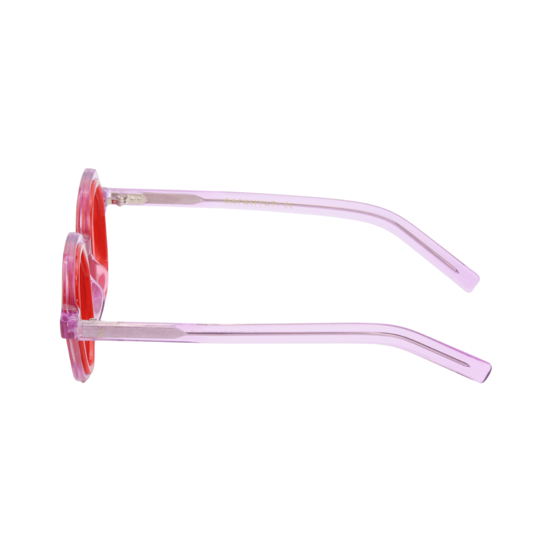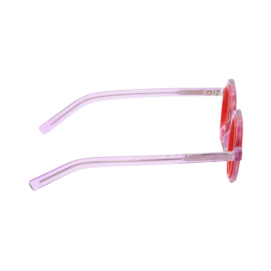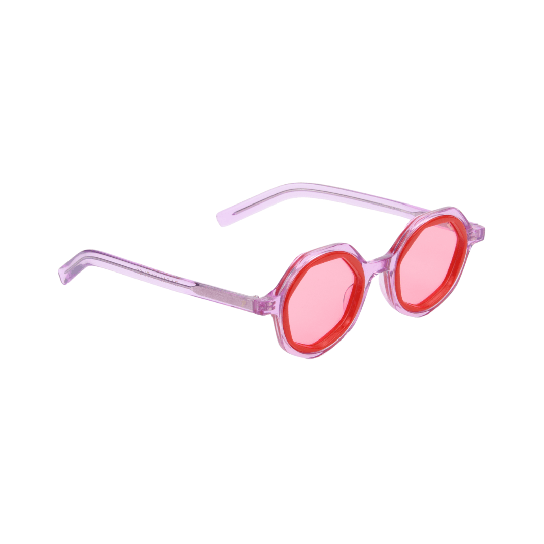 • Design : Monture octogonale en mauve translucide avec un contour rouge vif, parfaite pour un look distinctif et sophistiqué.