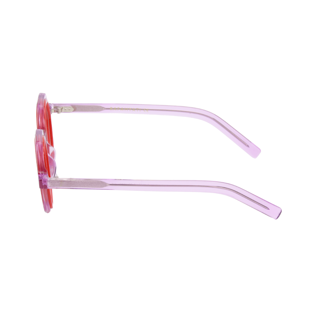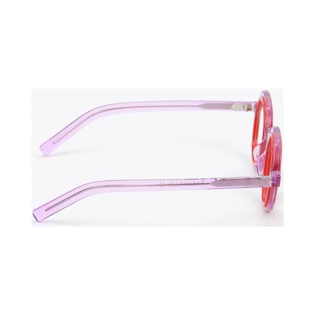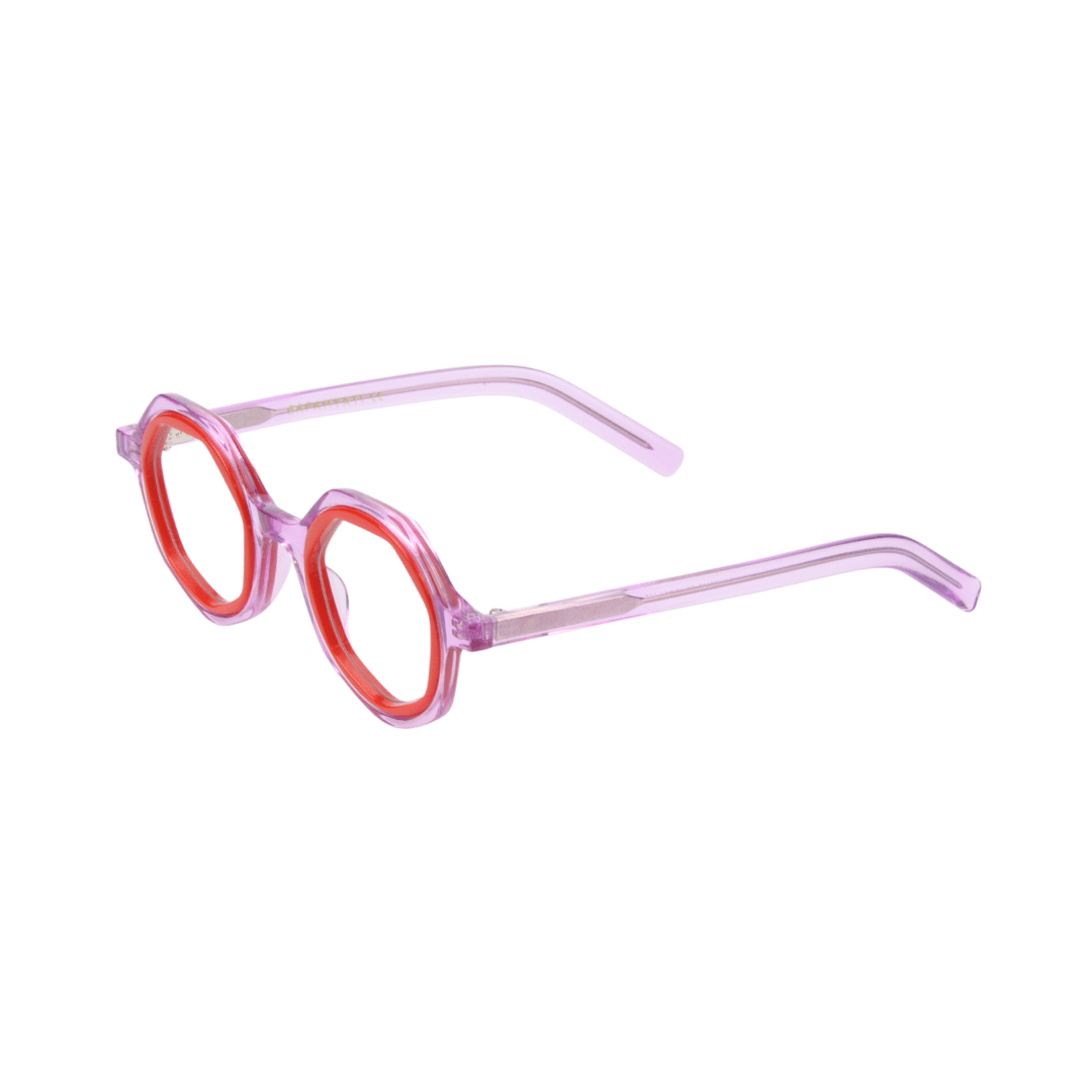 - Design : Monture octogonale en mauve translucide avec un contour rouge vibrant, parfait pour un look distinctif et avant-gardiste.