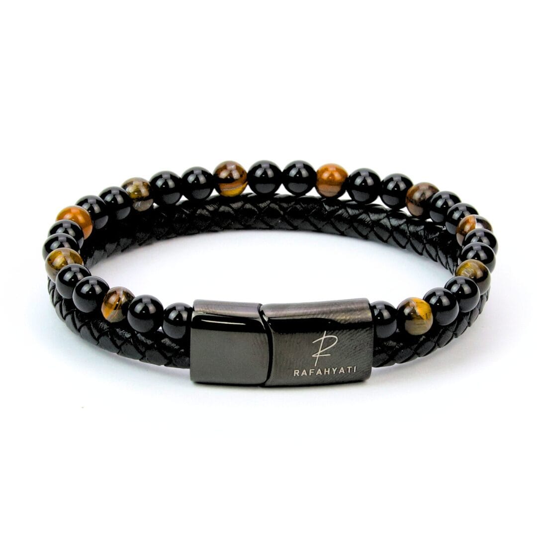 Bracelet Rafahyati en Cuir Véritable & Pierres Naturelles – Noir et Œil de Tigre