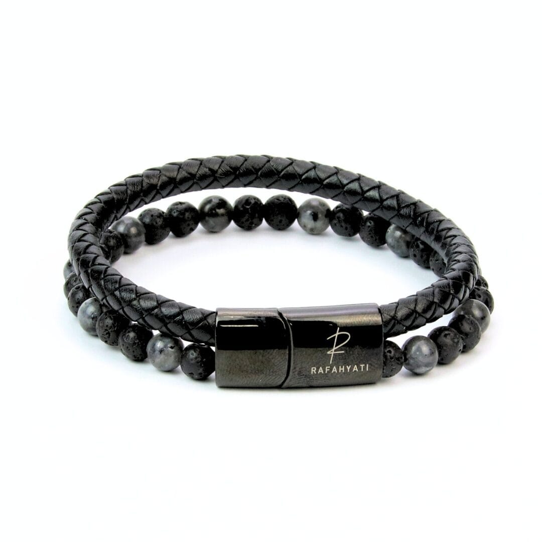 Offrez-vous un bracelet en cuir véritable pour homme  qui allie raffinement et robustesse. Le bracelet Rafahyati est un bijou intemporel, conçu pour ceux qui recherchent un accessoire de mode élégant et sophistiqué. Son design unique associe un bracelet en cuir tressé noir et des perles de pierre naturelle, créant un équilibre parfait entre style, confort et durabilité.