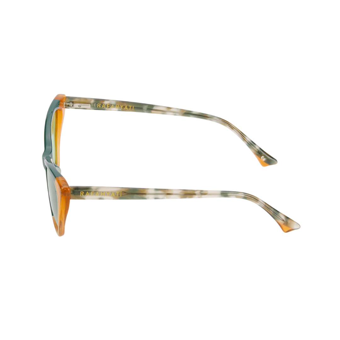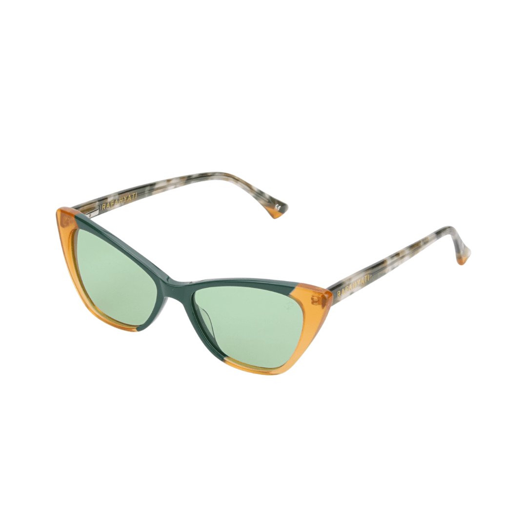 Affirmez votre style avec ces lunettes de soleil Rafahyati, fusion parfaite d’élégance et d’originalité. Leur monture cat eye en acétate haut de gamme offre une touche sophistiquée et audacieuse, idéale pour un look affirmé et moderne. L’alliance des teintes vert émeraude et ambre sublime leur design raffiné, tandis que les branches à motif écaille ajoutent une dimension artistique unique.