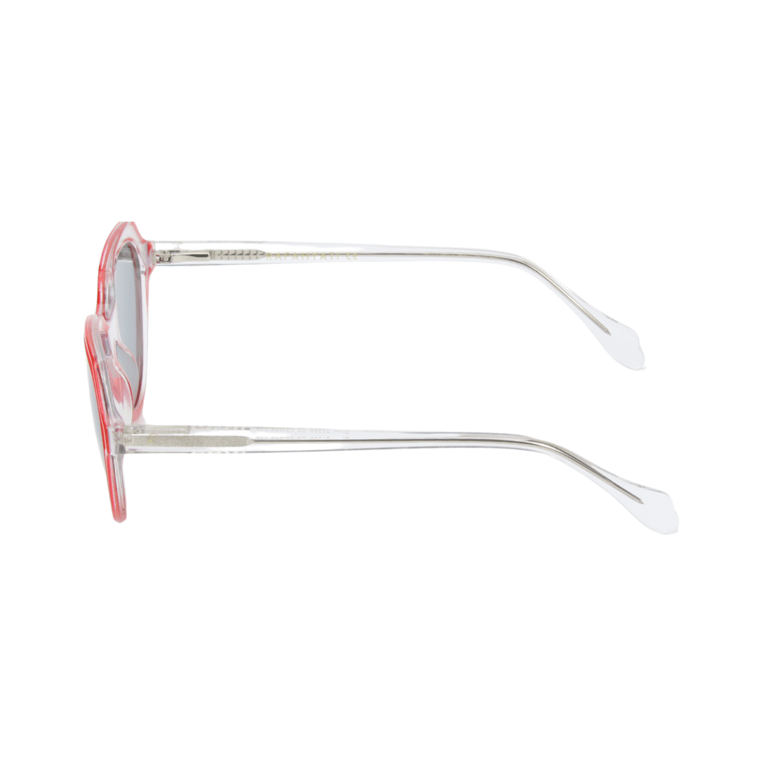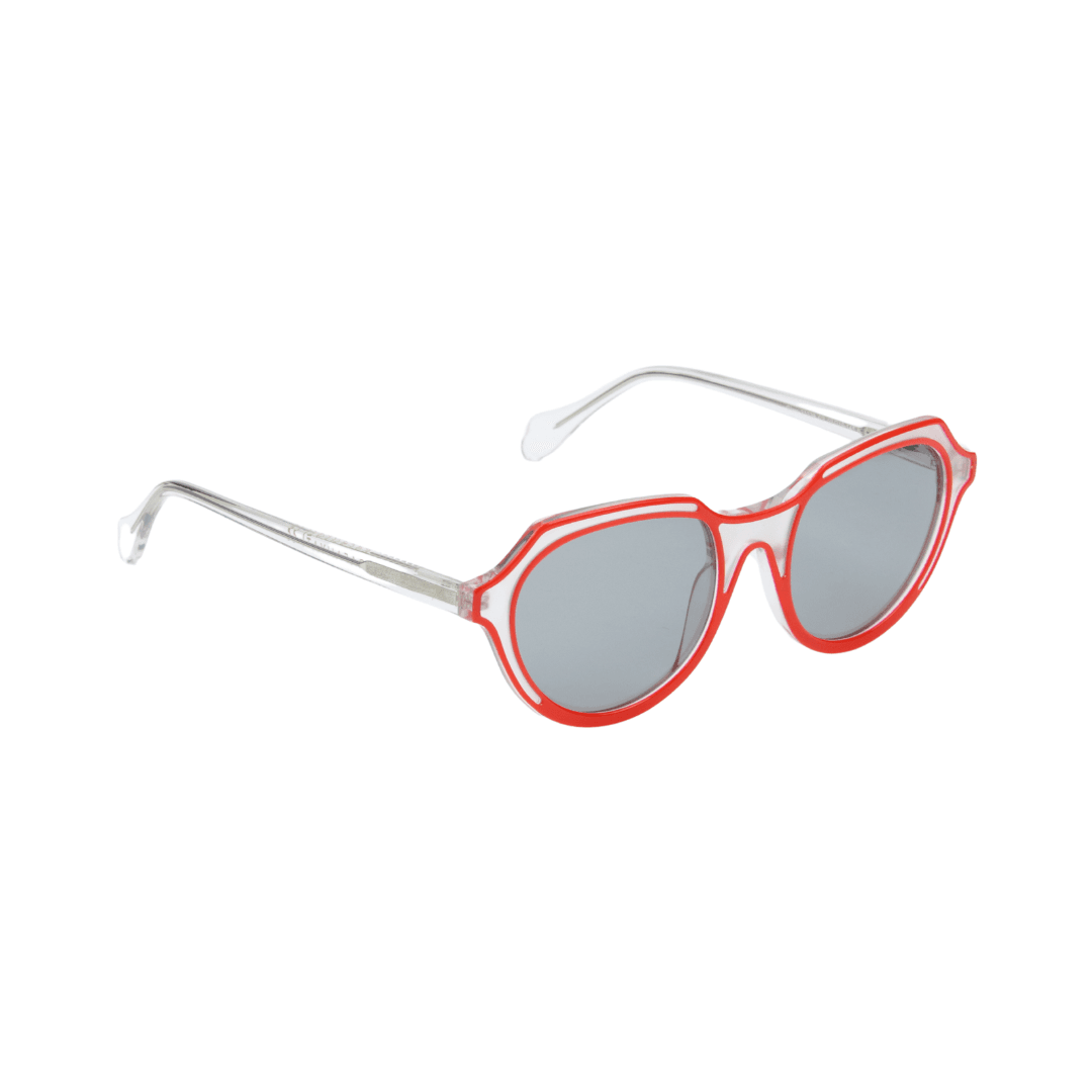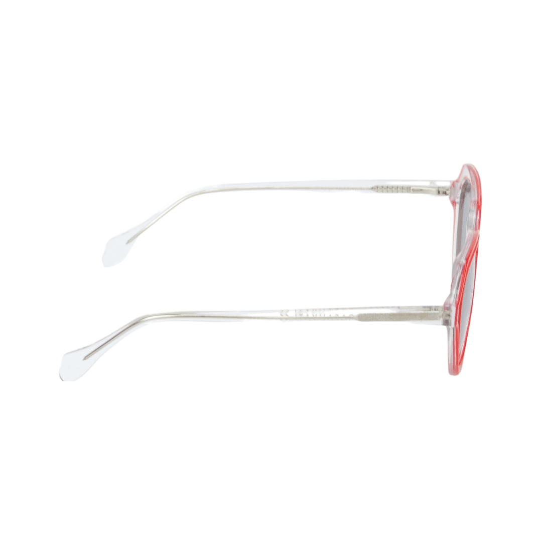 Design : Monture octogonale en acétate transparent avec des contours rouges pour un effet distinctif et tendance.