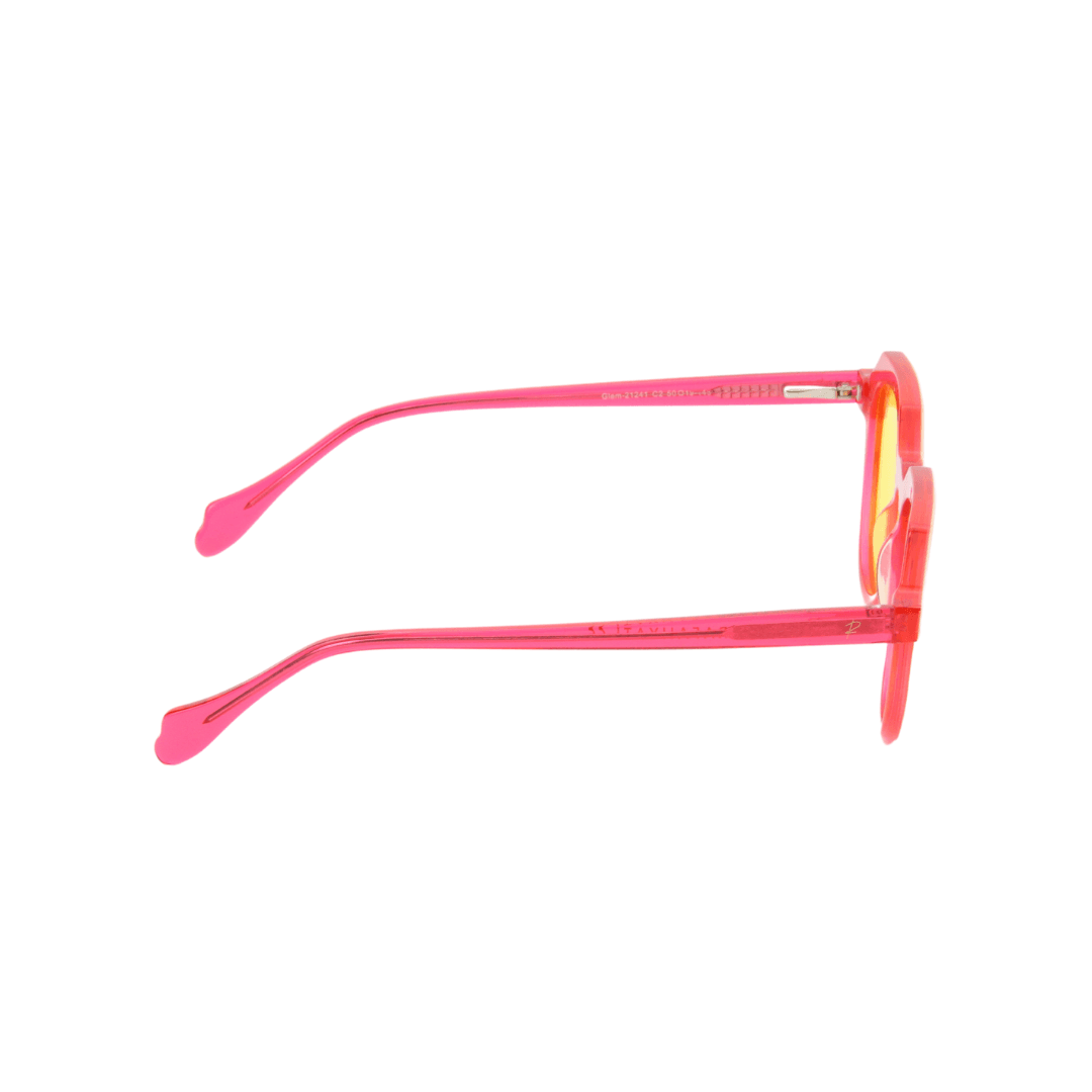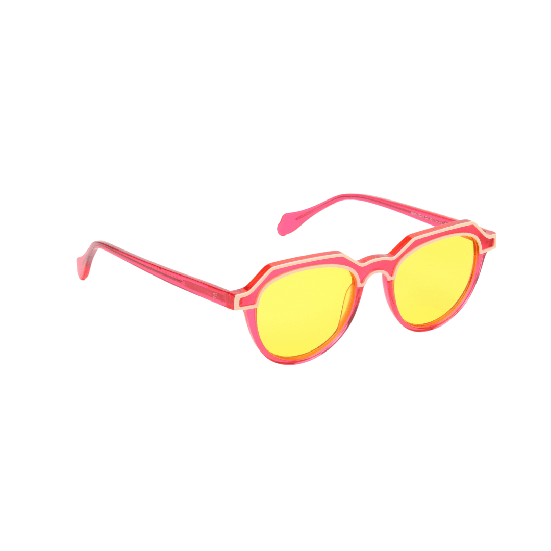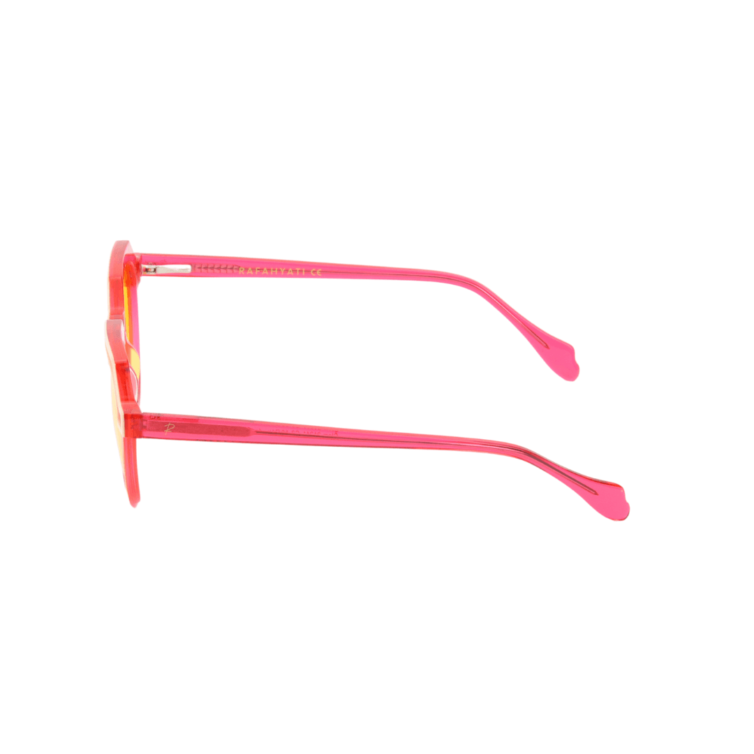 Exprimez votre personnalité avec ces lunettes de soleil Rafahyati au design audacieux et vibrant. Avec leur monture rose translucide et leurs verres jaune éclatant, elles ajoutent une touche unique et énergique à votre look.