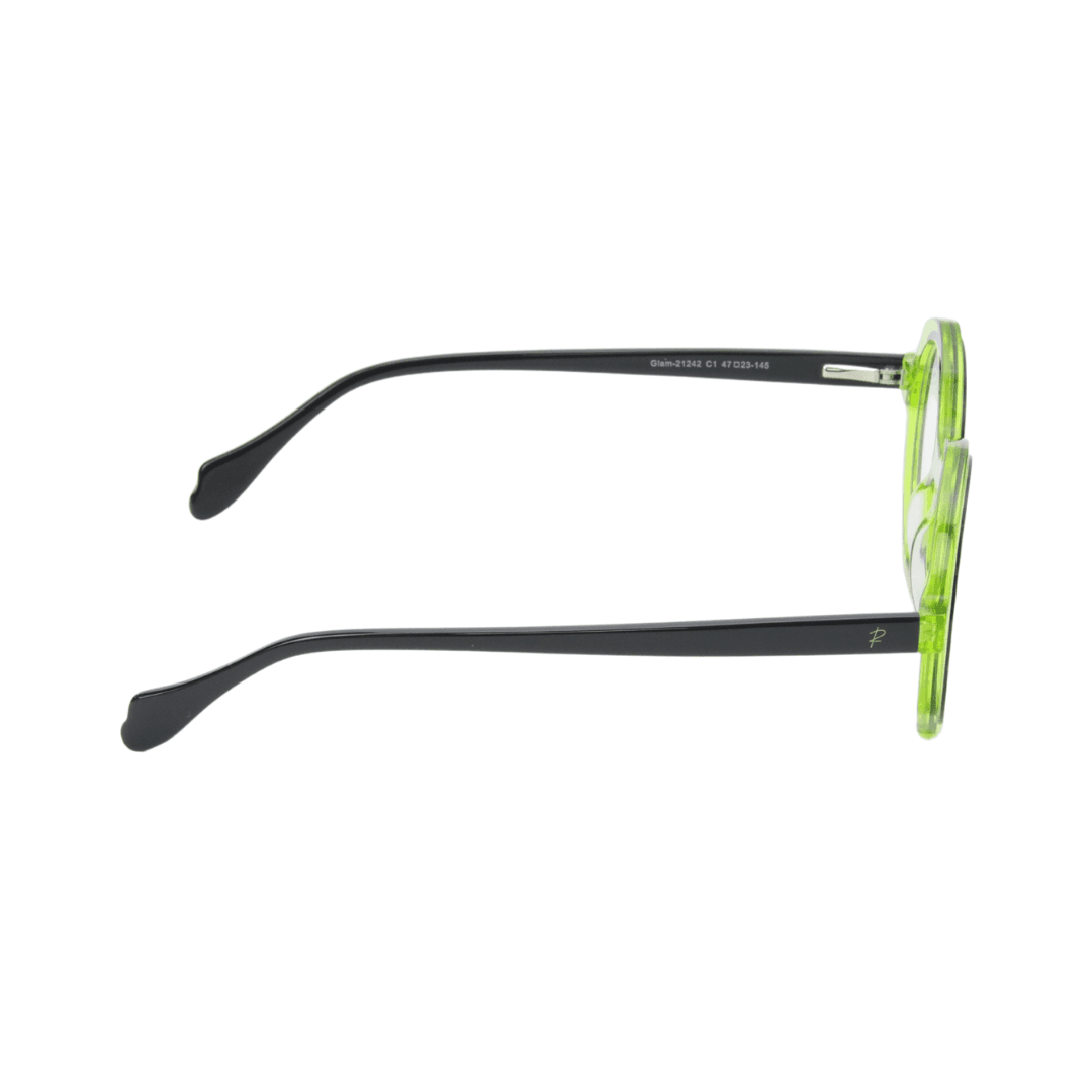 - Design : Monture ronde géométrique avec une finition translucide vert néon et un contour intérieur noir, pour un look distinctif et tendance.