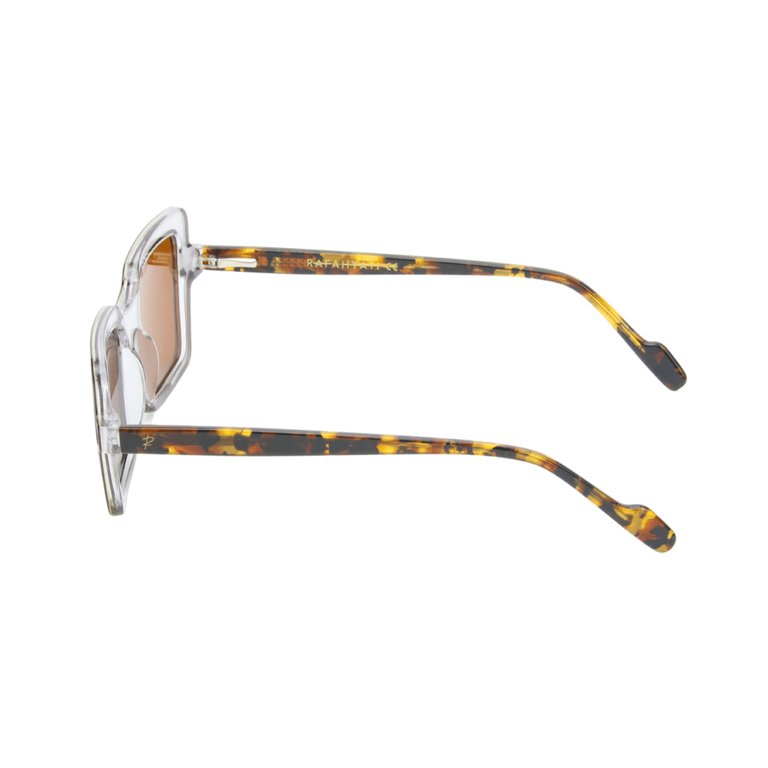• Couleur de la monture : Transparent avec détails marron, pour un contraste subtil et élégant.