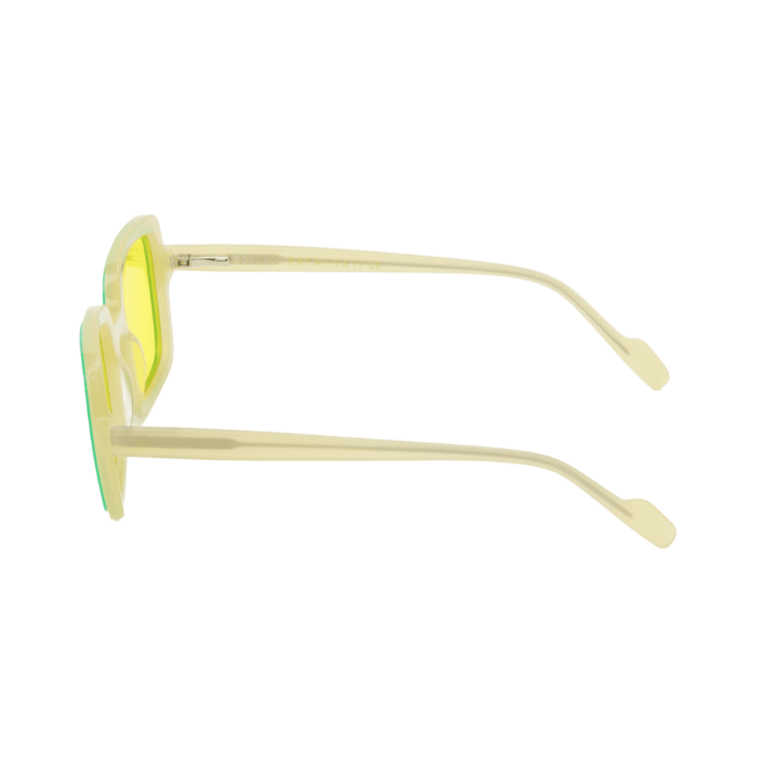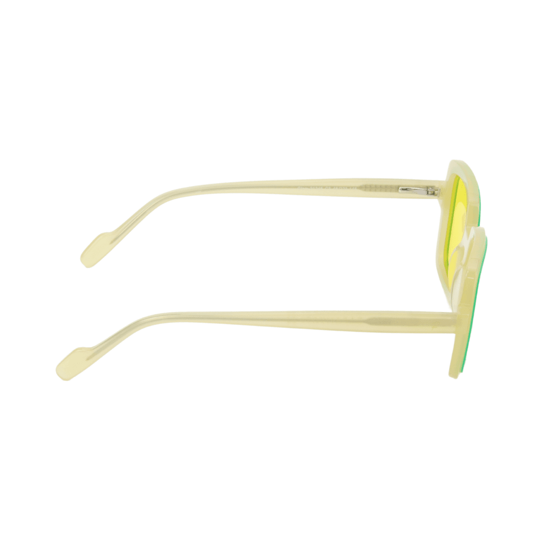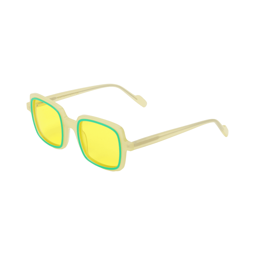 • Design : Monture carrée translucide avec un contour néon vert et des verres jaunes vifs, apportant une touche vibrante et futuriste.