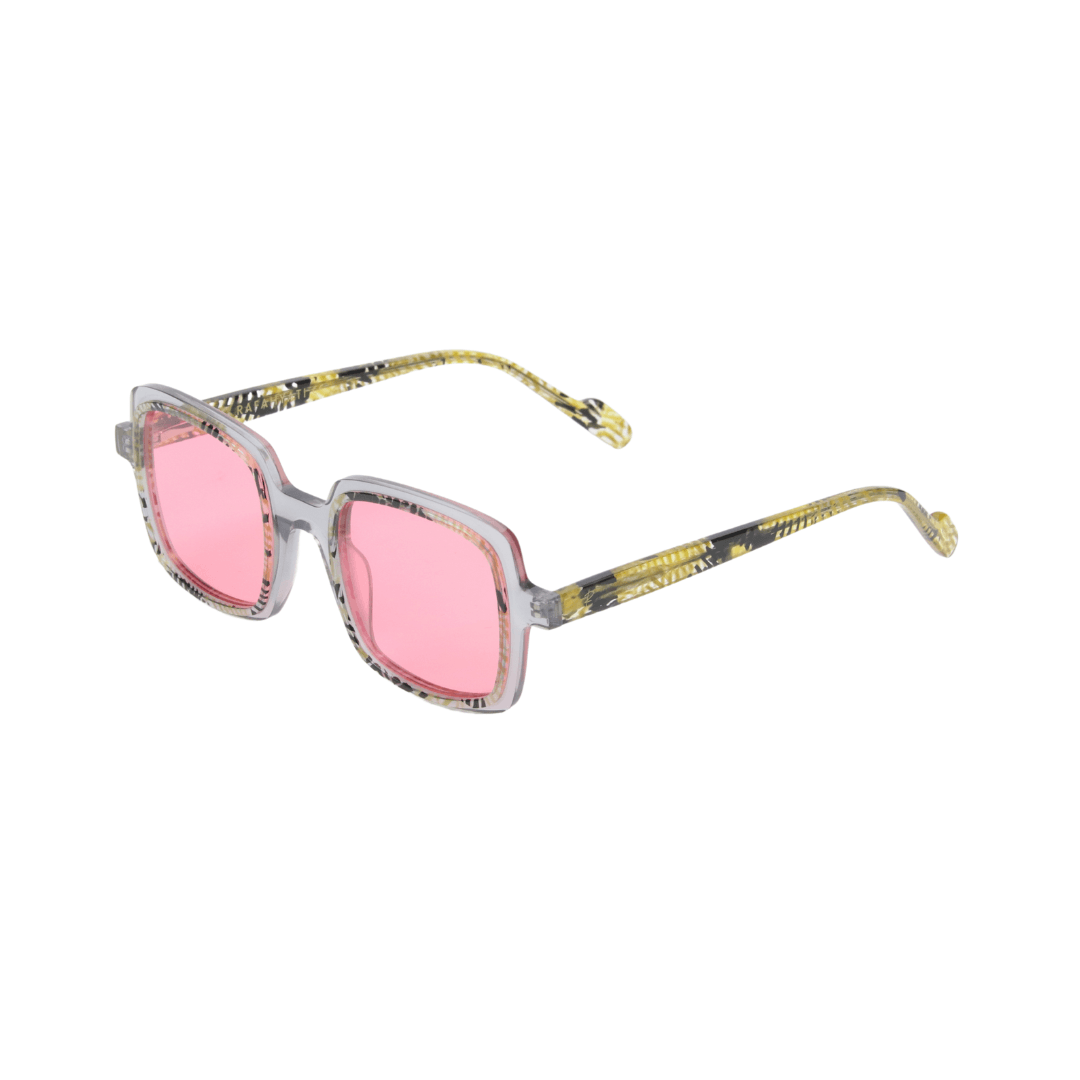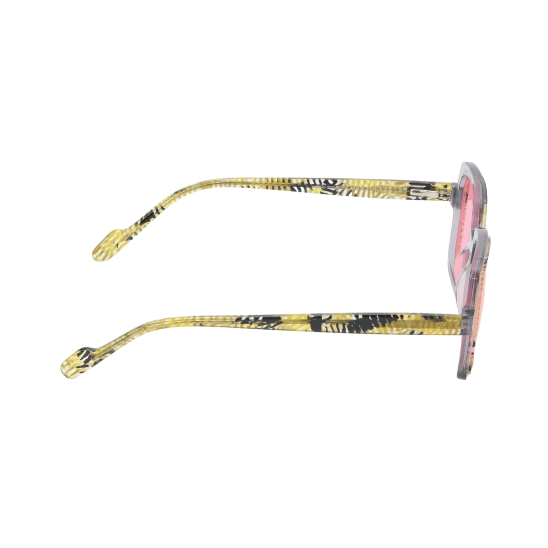 Affirmez votre style avec ces lunettes de soleil uniques de la collection Rafahyati. Leur monture écaille dorée, combinée à des verres teintés rose, offre un design audacieux et raffiné, parfait pour un look sophistiqué.