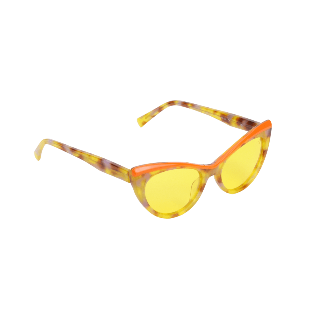- Design :Forme : Cat Eye (œil de chat), élégante et rétro-chic.Couleur de la monture : Écaille aux tons miel avec un accent orange vif sur la partie supérieure pour un effet contrasté et moderne.Finition : Brillante, avec une structure fine et élégante qui épouse le visage.