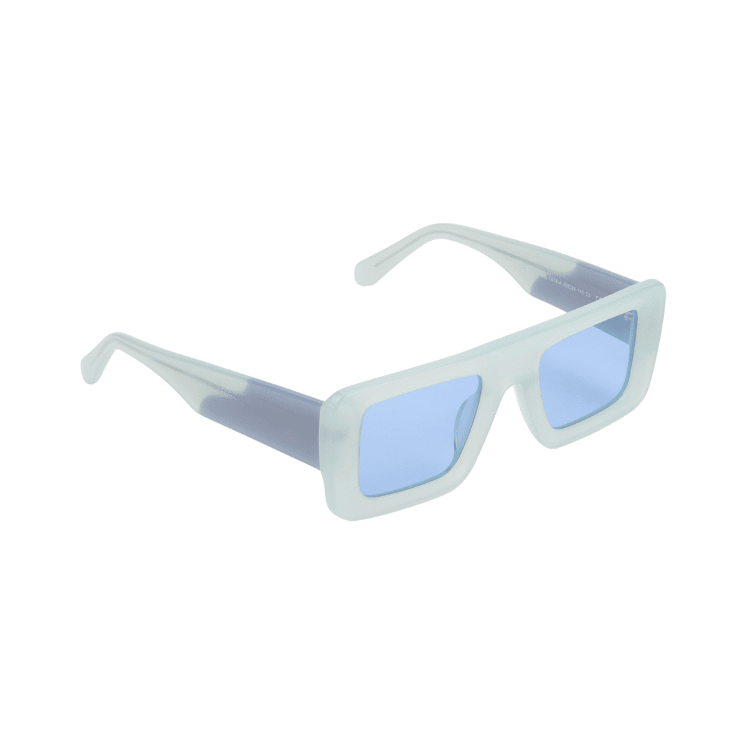 Design : Monture rectangulaire oversize en bleu givré dégradé, alliant fraîcheur et élégance.
