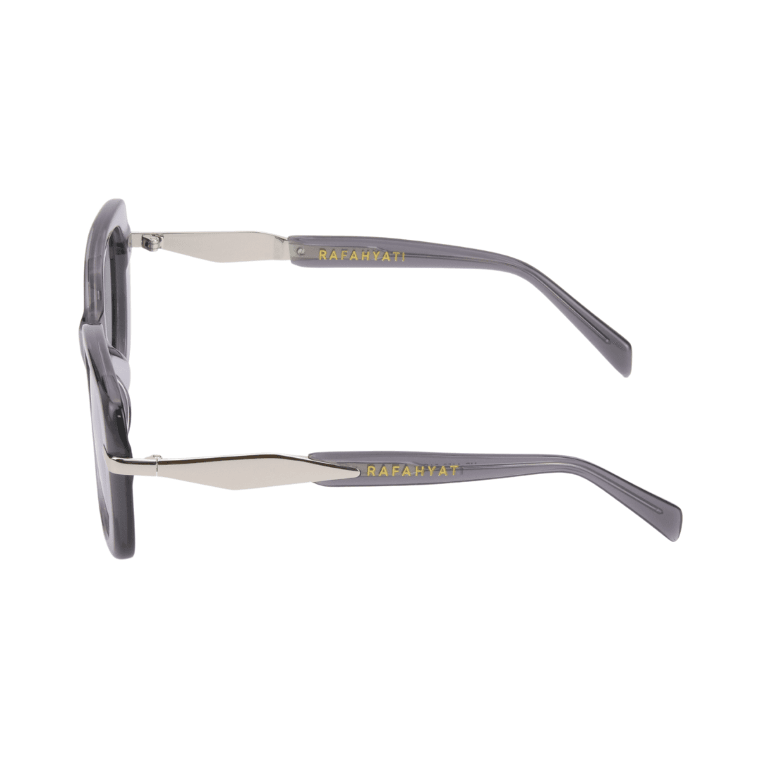 • Branches :Finition en acétate gris translucide, agrémentée d’un insert métallique argenté pour une allure luxueuse. Gravure dorée « Rafahyati » sur la branche gauche, signature d’un design exclusif.