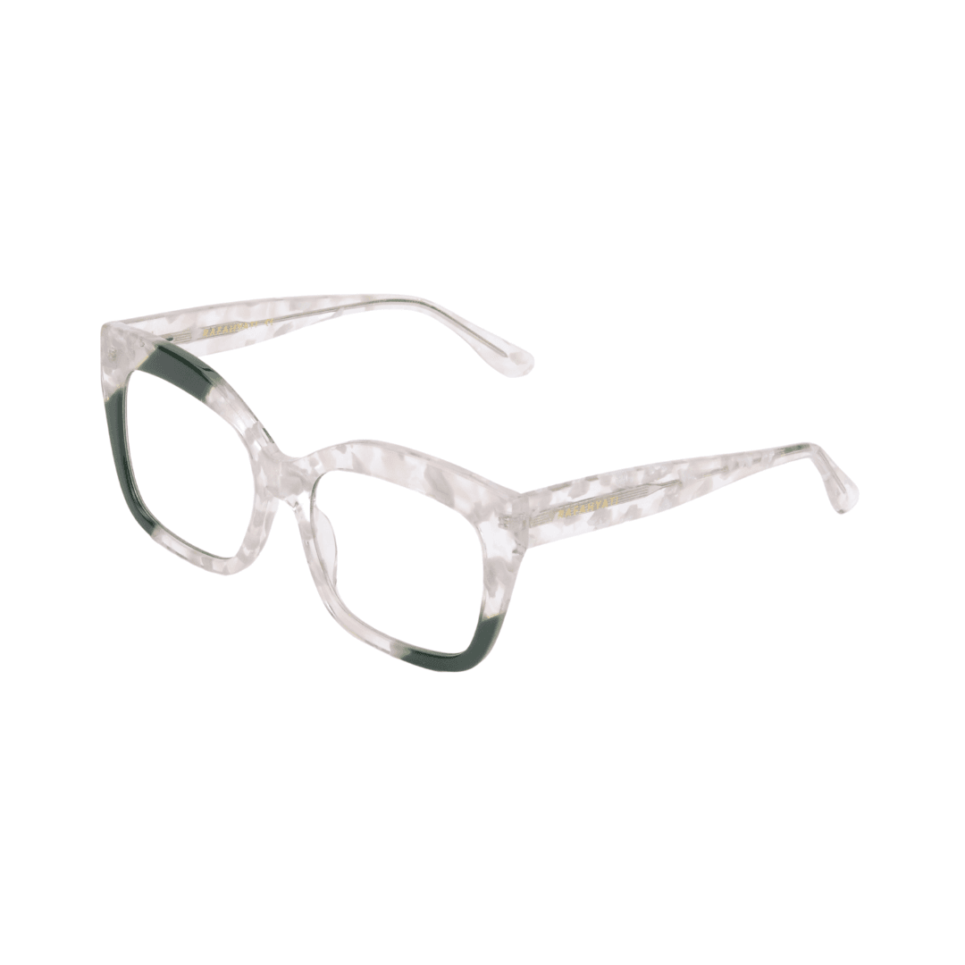 Sublimez votre regard avec ces lunettes de Protection Rafahyati, conçues pour allier sophistication et caractère. Leur design cat eye (œil de chat) aux motifs marbrés blanc et vert leur confère une élégance intemporelle, parfaite pour celles qui recherchent une touche d’originalité raffinée.