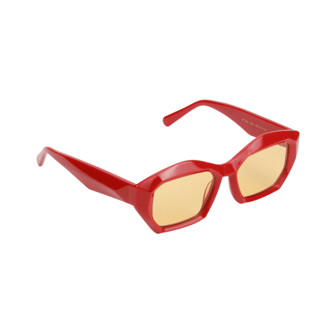 • Design : Monture géométrique rouge intense avec des verres teintés jaunes, pour un style affirmé et tendance.