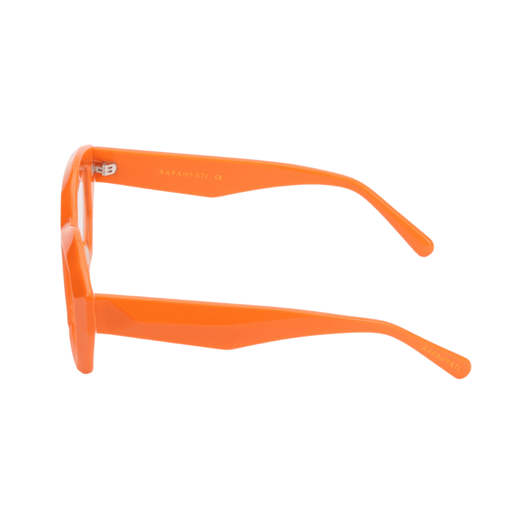 Exprimez votre style avec ces lunettes de la collection Rafahyati, dotées d’un design sculptural et d’une monture audacieuse en orange vibrant. Une combinaison parfaite entre modernité et sophistication.
