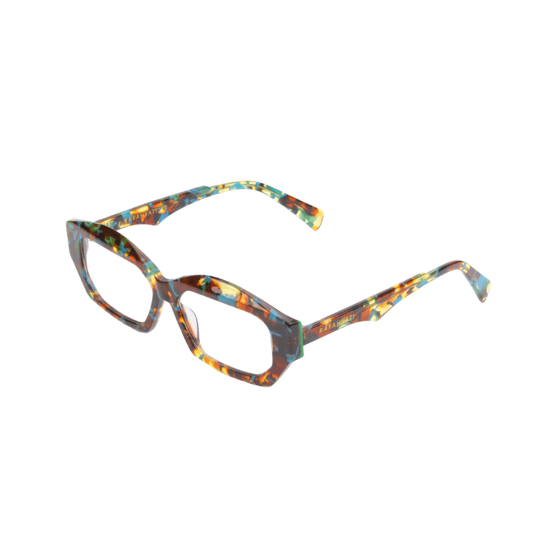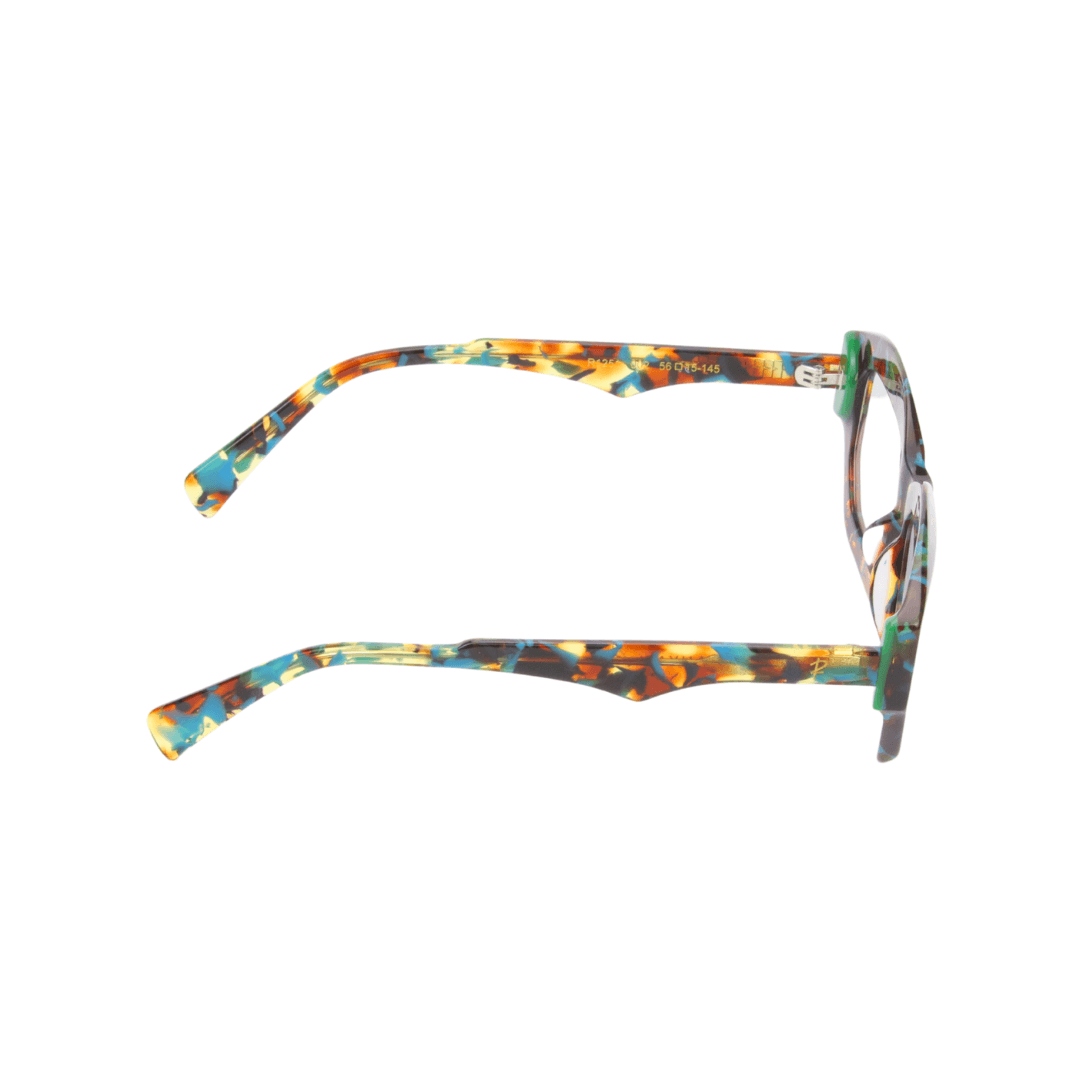 - Design : Monture géométrique sculptée avec un effet écaille multicolore, combinant modernité et caractère.