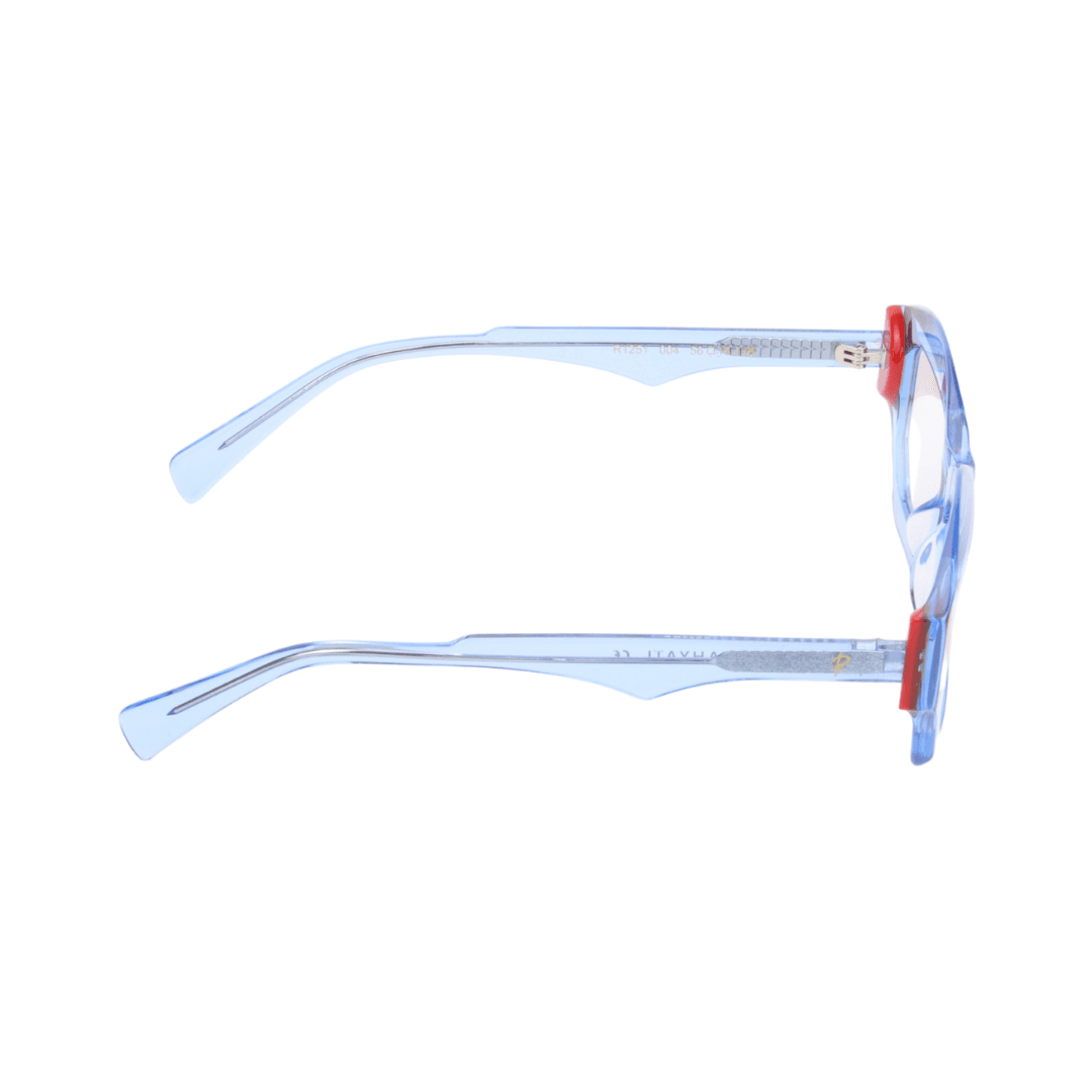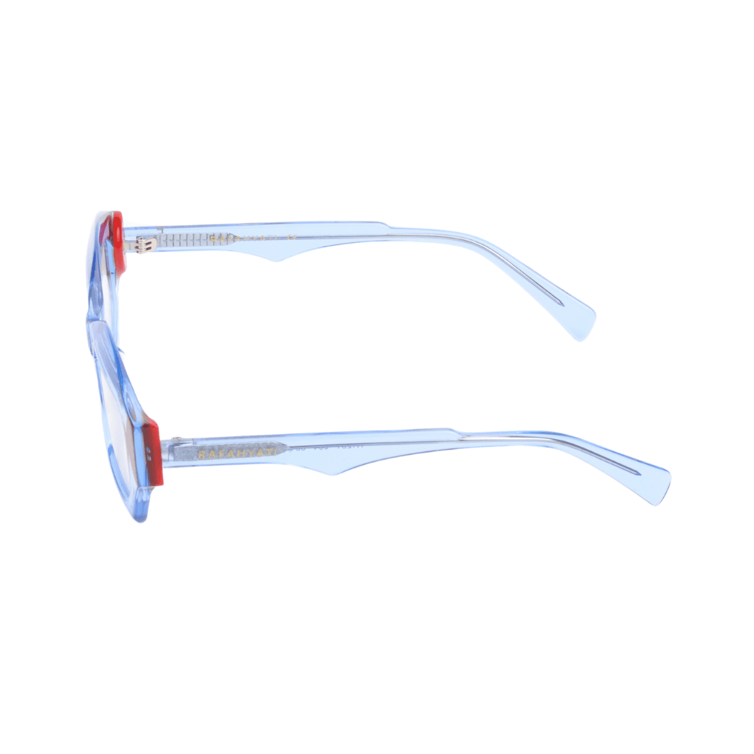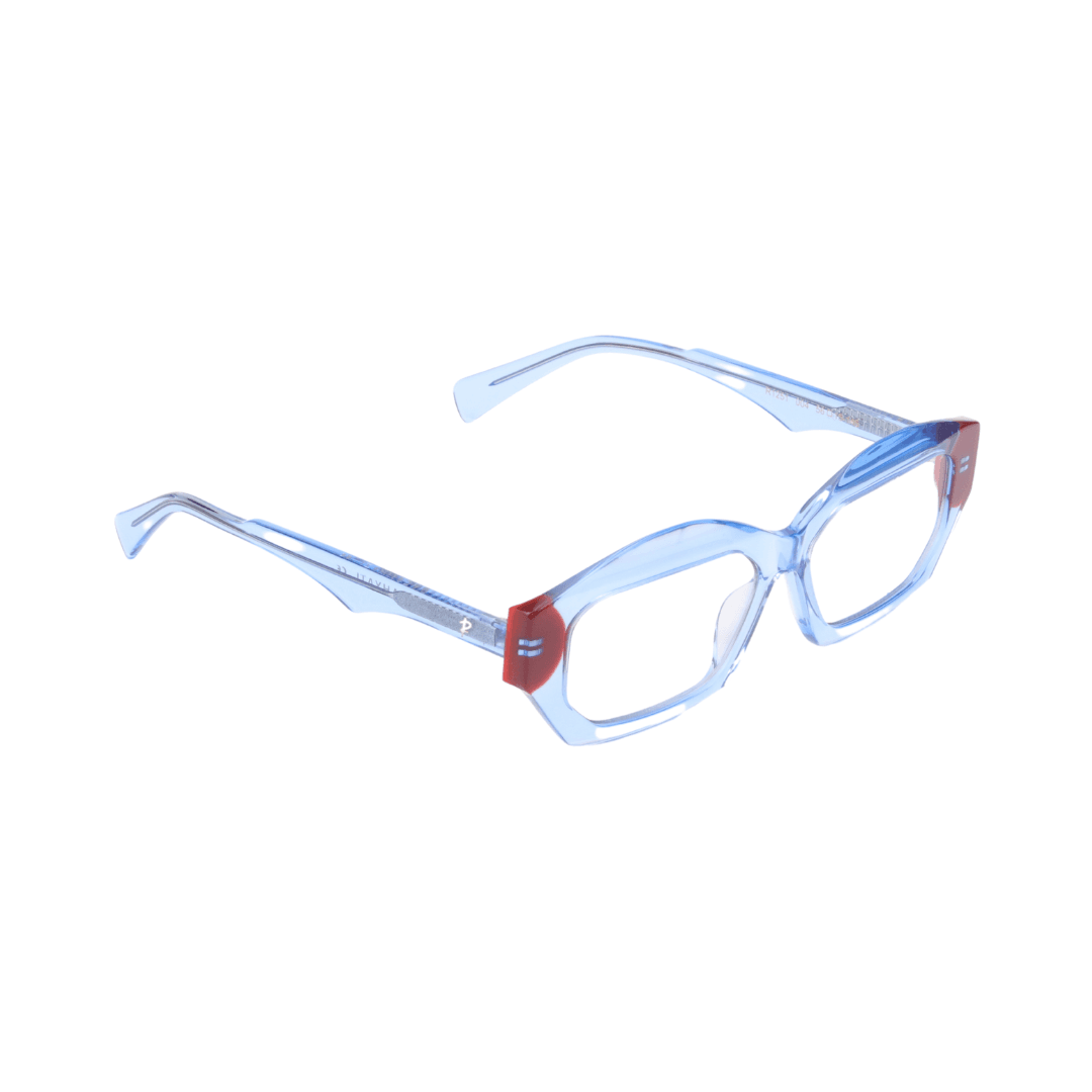 • Design :Monture géométrique angulaire, apportant une touche contemporaine et originale,Finition bleu ciel translucide avec accents rouges, ajoutant du dynamisme au design