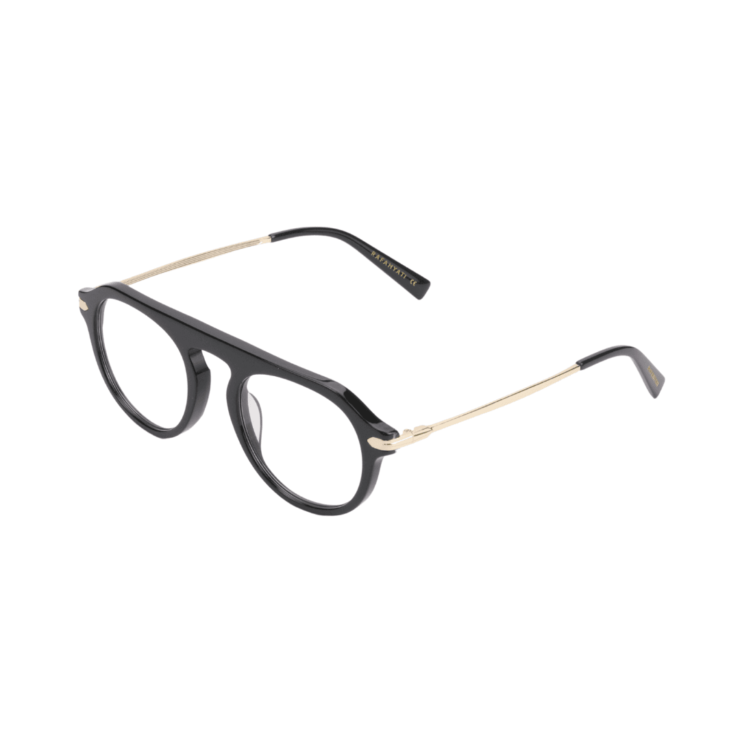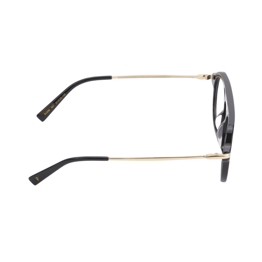- Design : Monture ronde avec une finition en acétate noir et des détails métalliques dorés, parfaite pour un look chic et moderne.