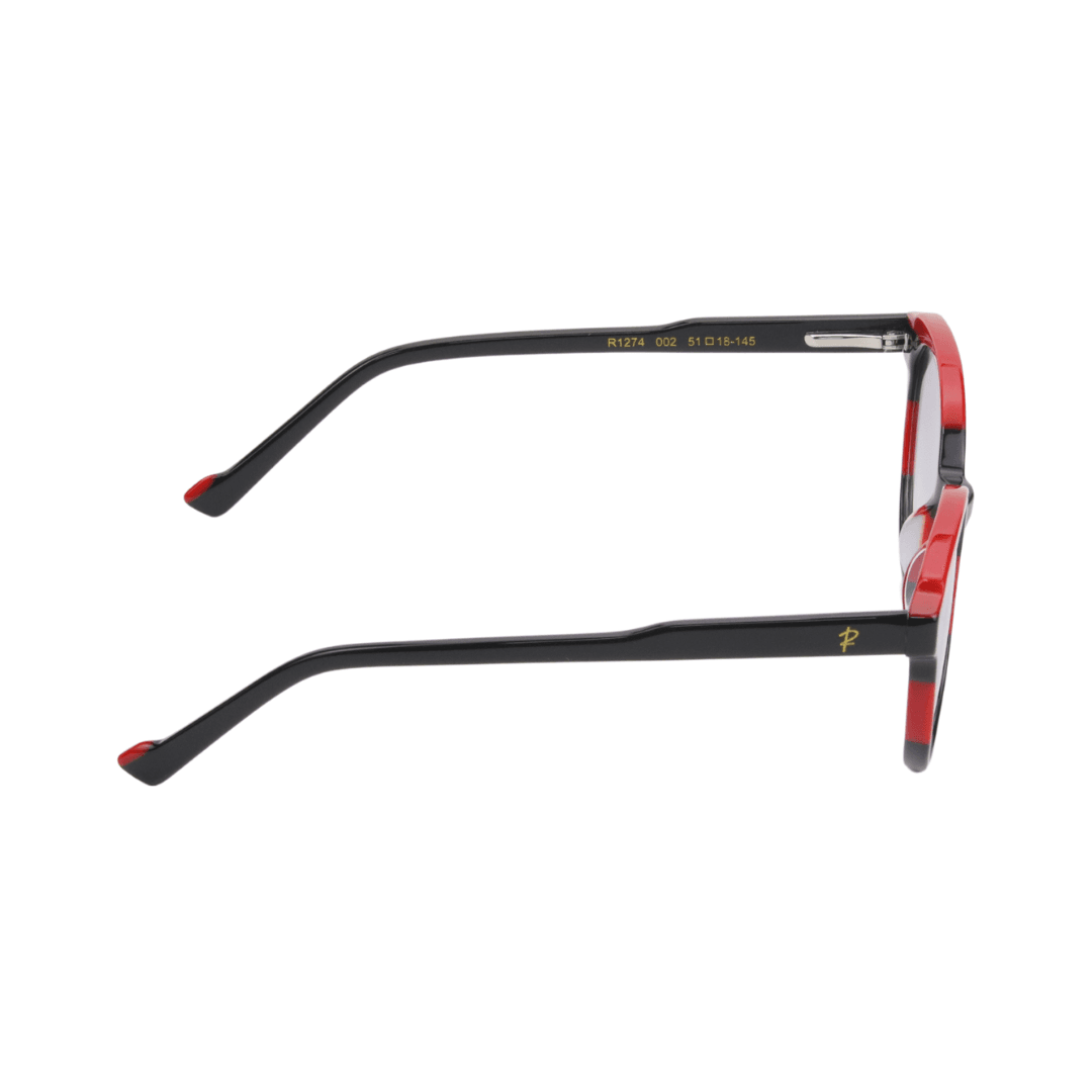 Affirmez votre style avec ces lunettes de soleil Rafahyati, à la fois audacieuses et raffinées. Leur design rond (round) intemporel est sublimé par une monture bicolore noire et rouge vif, idéale pour ceux qui osent l’élégance moderne avec une touche de caractère.