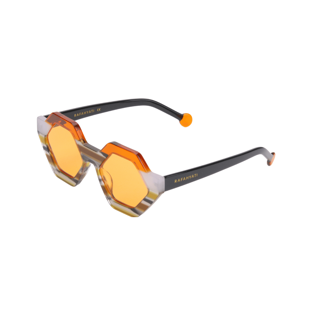 Exprimez votre audace avec ces lunettes de soleil Rafahyati au design géométrique unique. Inspirées de l’architecture moderne, elles combinent angles marqués et nuances raffinées pour un style distinctif et contemporain.