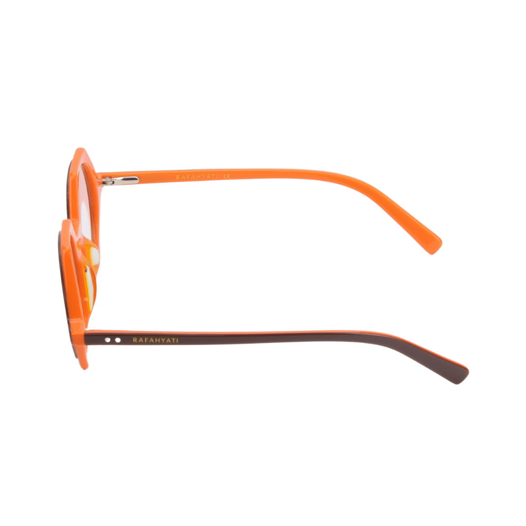 - Design : Monture octogonale avec une finition bicolore noir et orange, idéale pour un style affirmé et contemporain.