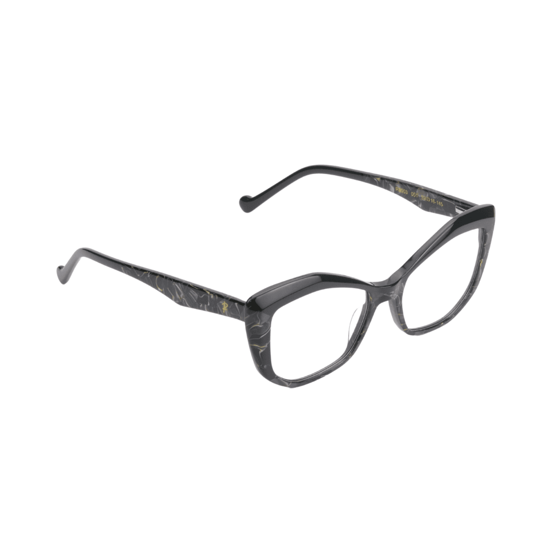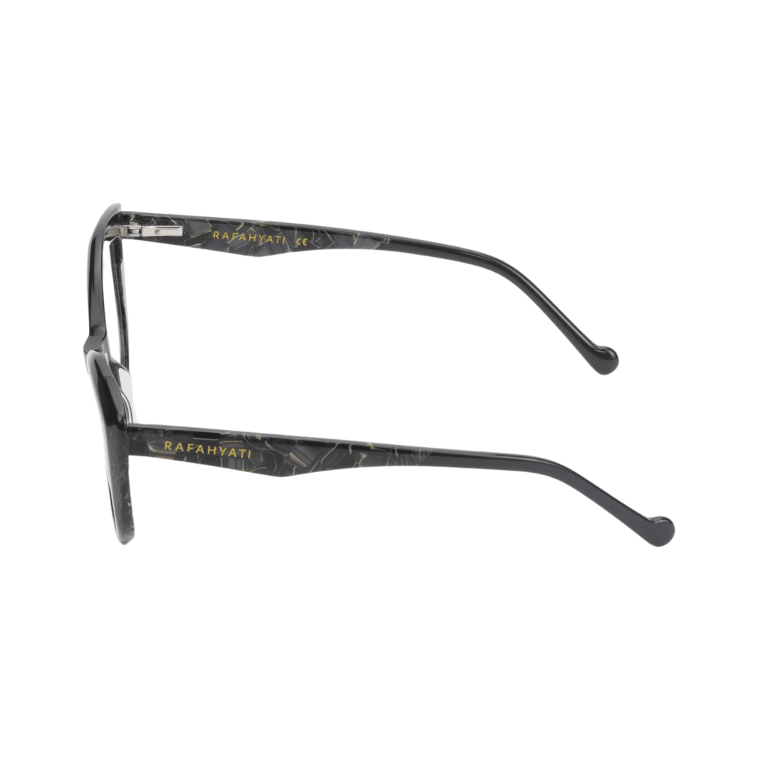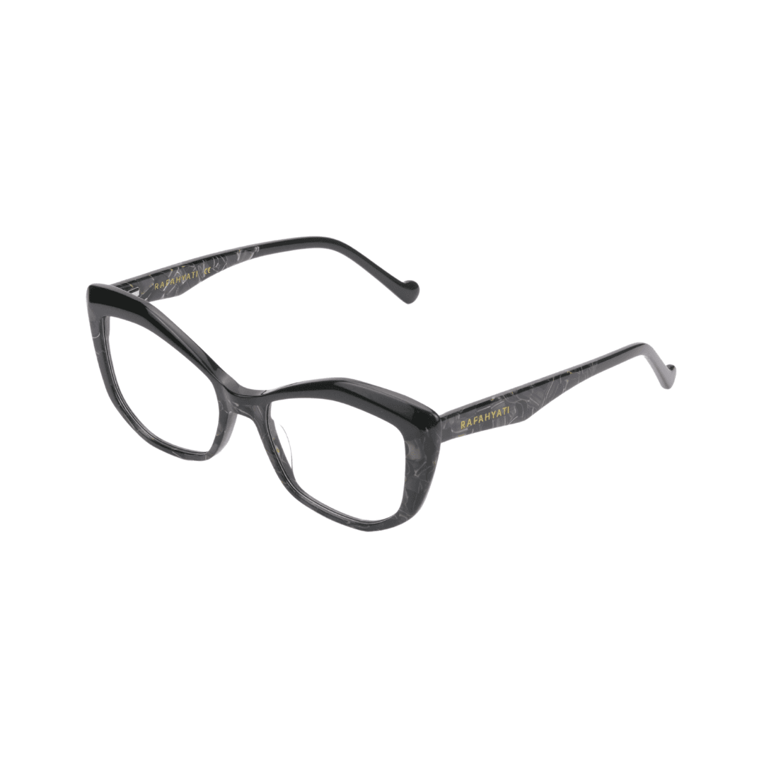 Alliez caractère et raffinement avec les lunettes de vue Rafahyati RJ003. Ce modèle à la silhouette œil de chat (cat-eye) est pensé pour les femmes en quête d’un style affirmé et distingué. Sa monture en bio acétate haut de gamme marbré noir et doré offre une allure luxueuse et intemporelle.
