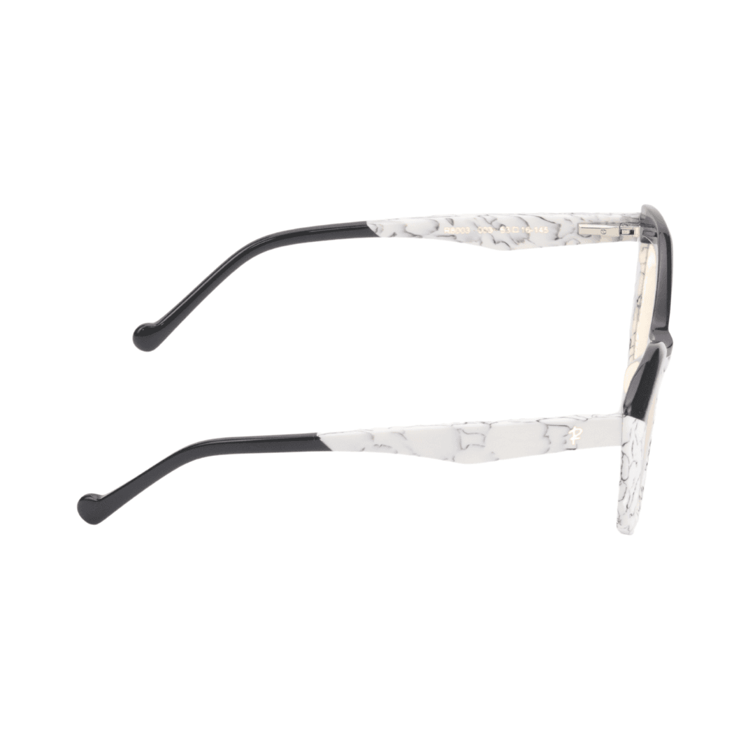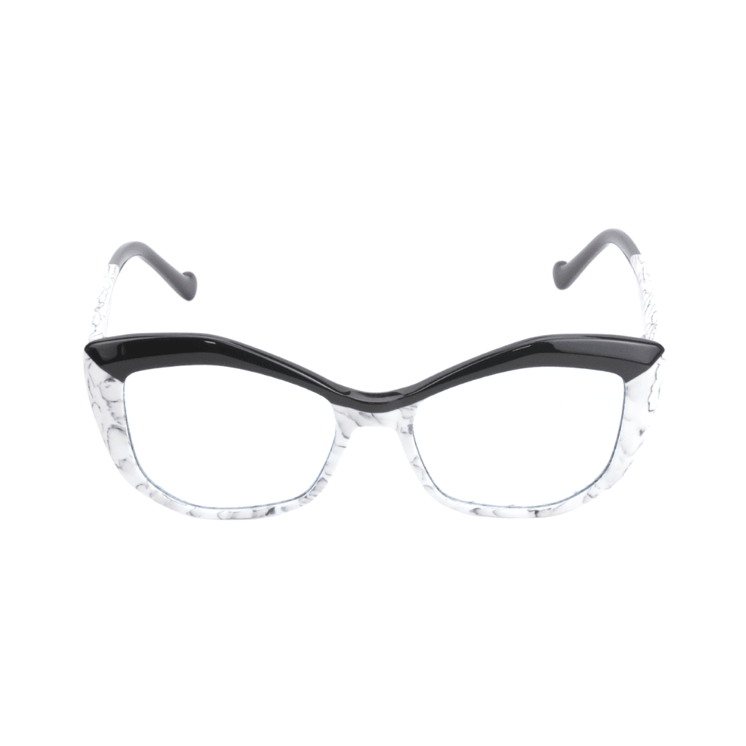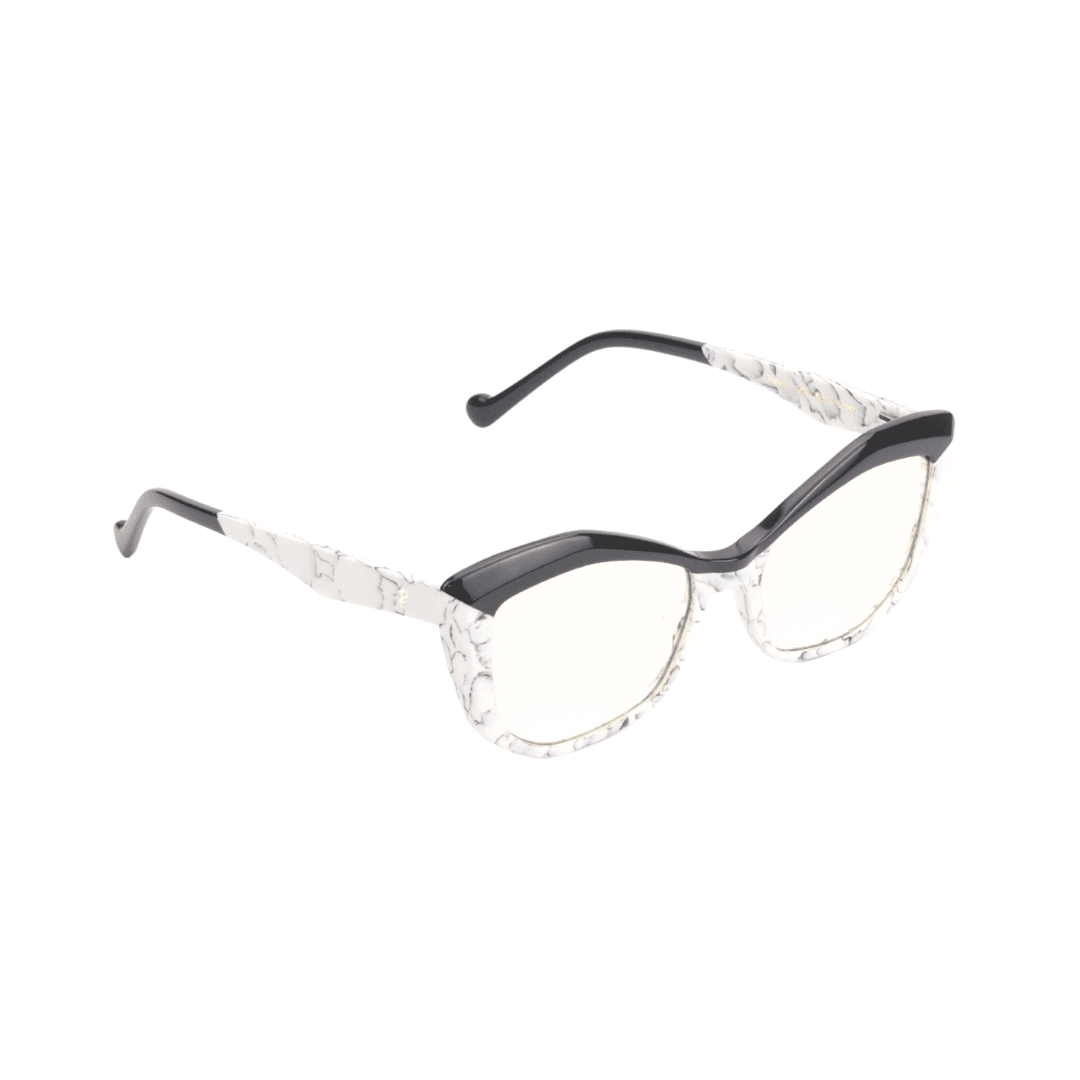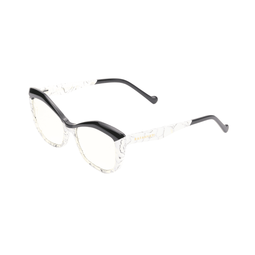 Affirmez votre style avec élégance grâce à ces lunettes de protection Rafahyati, qui allient originalité et confort. Leur design œil de chat (cat eye) et leur finition marbrée blanche, rehaussée d’une touche de noir brillant sur la partie supérieure de la monture, offrent un rendu audacieux et sophistiqué. Un modèle signature pour les amateurs de distinction.