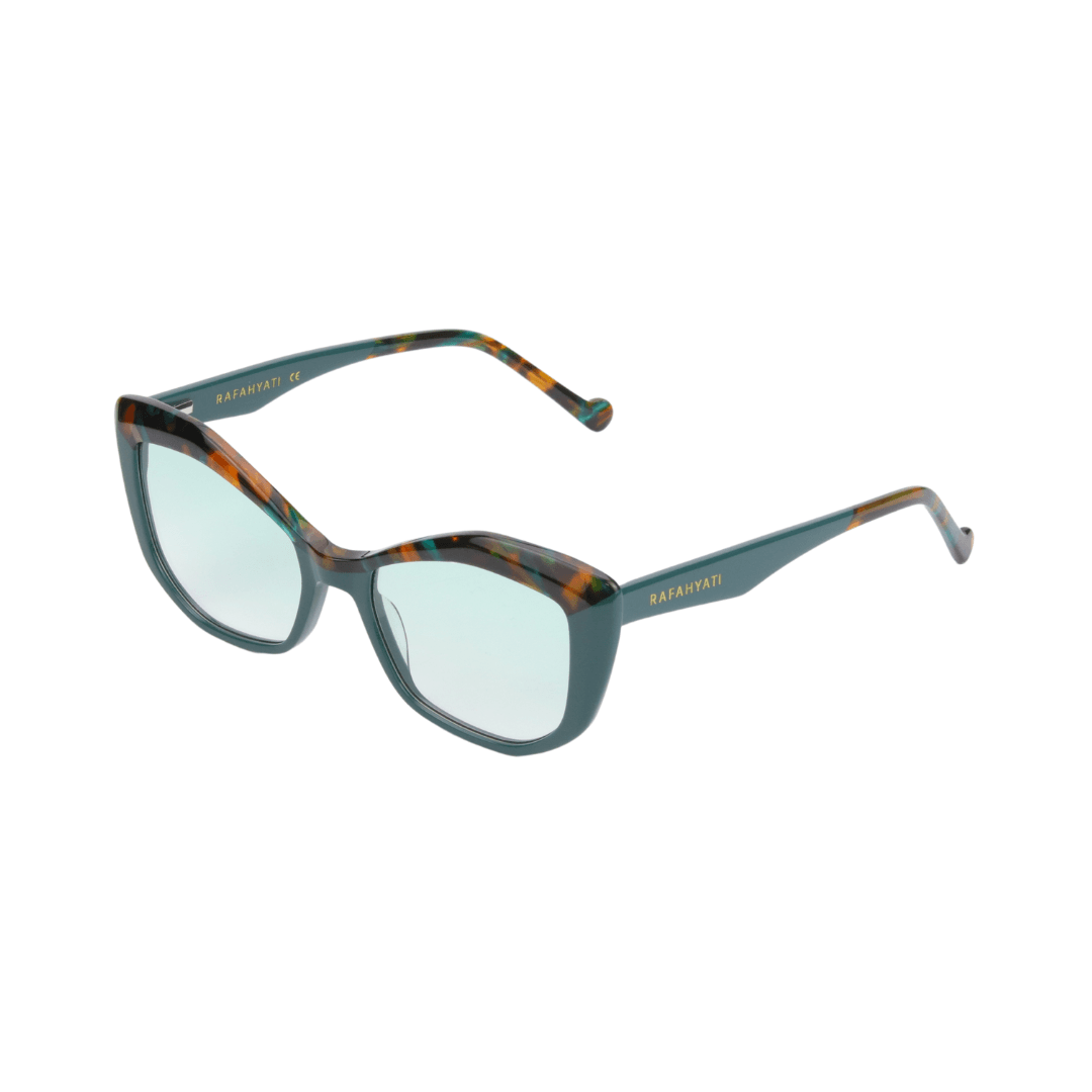 • Design : Monture œil de chat (cat eye) en finition écailles vertes et brunes pour un look audacieux et raffiné.