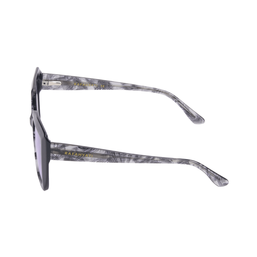• Branches : Acétate travaillé avec des motifs en écaille bleu royal et doré, ajoutant une finition luxueuse. Gravure « Rafahyati » en doré sur la branche gauche, signe d’un design exclusif.