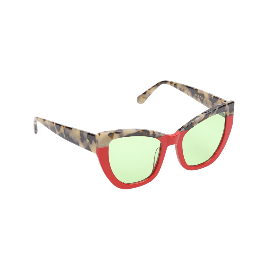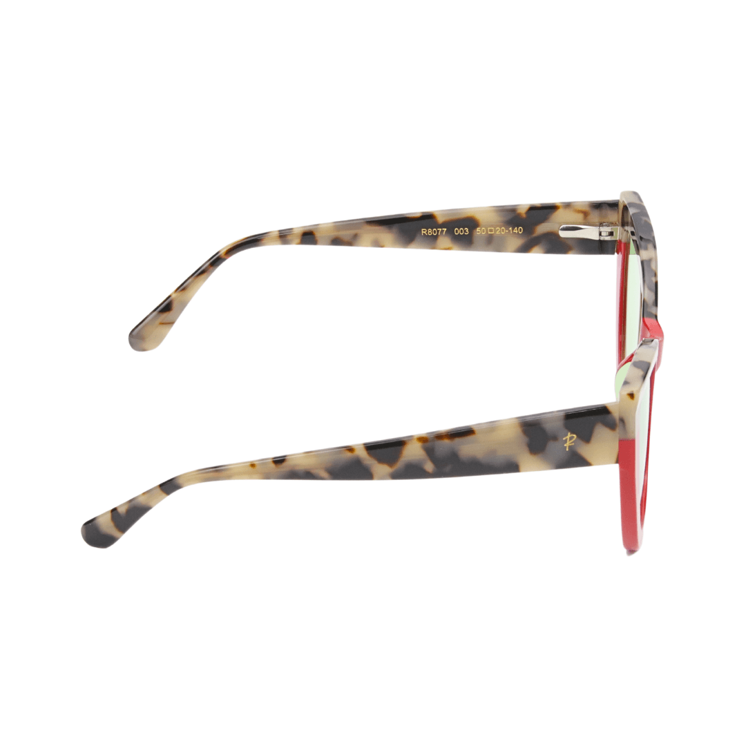 - Design : Monture œil de chat, associant une finition en écaille de tortue et un contour rouge intense pour un style chic et affirmé.