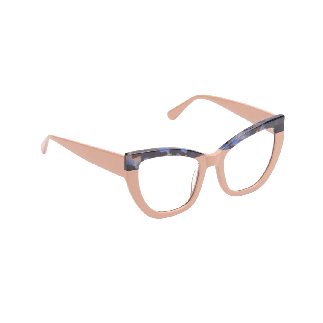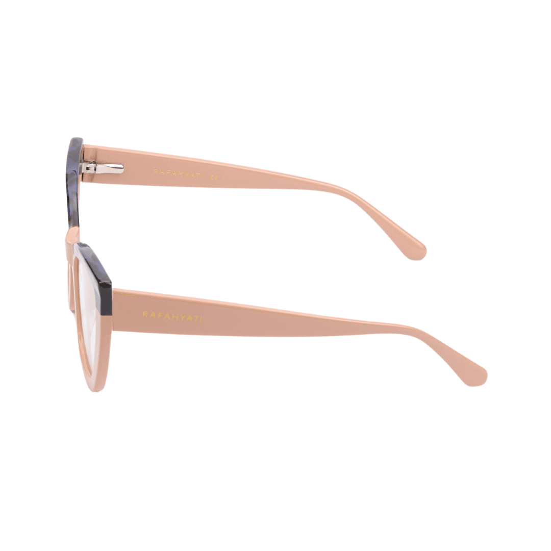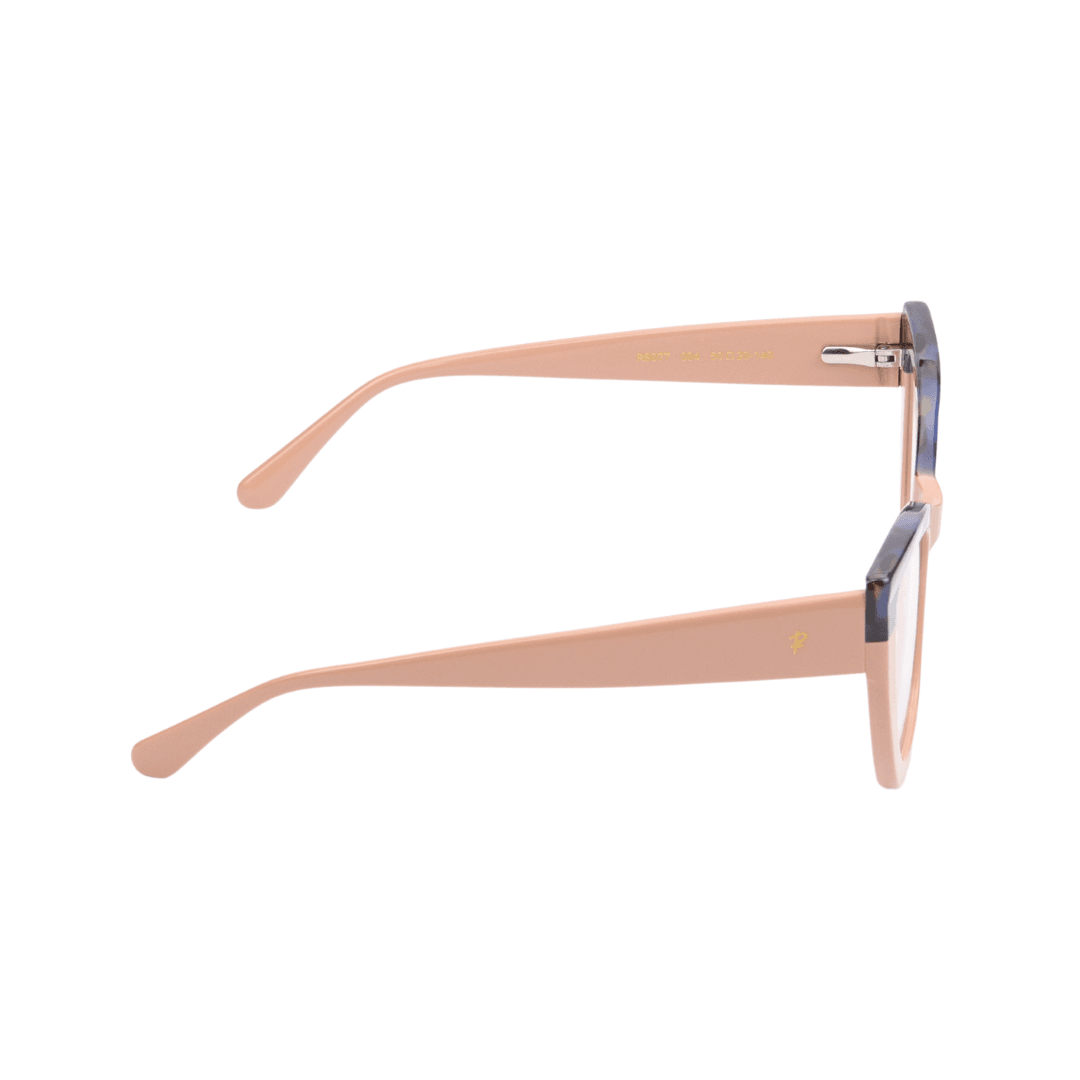 - Design : Forme œil de chat (Cat Eye) avec un contraste subtil entre le nude et l’effet bicolore sur la partie supérieure.