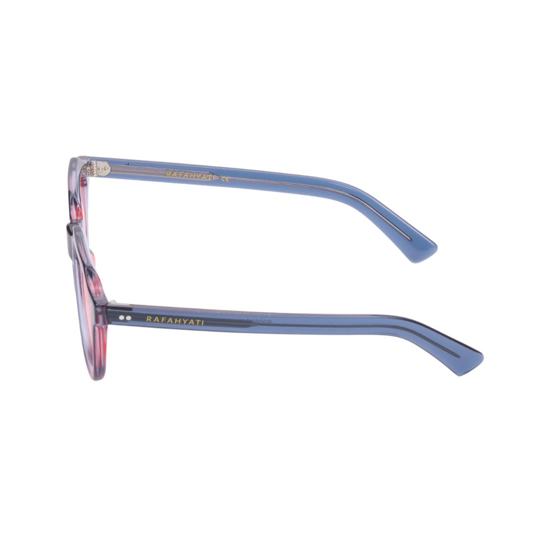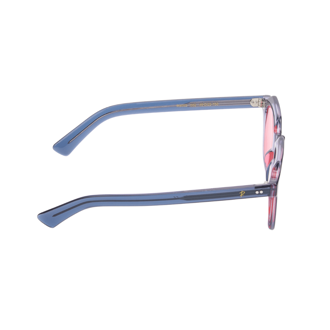 - Design : Monture carrée aux nuances bleues translucides et rose, apportant une touche audacieuse et raffinée.