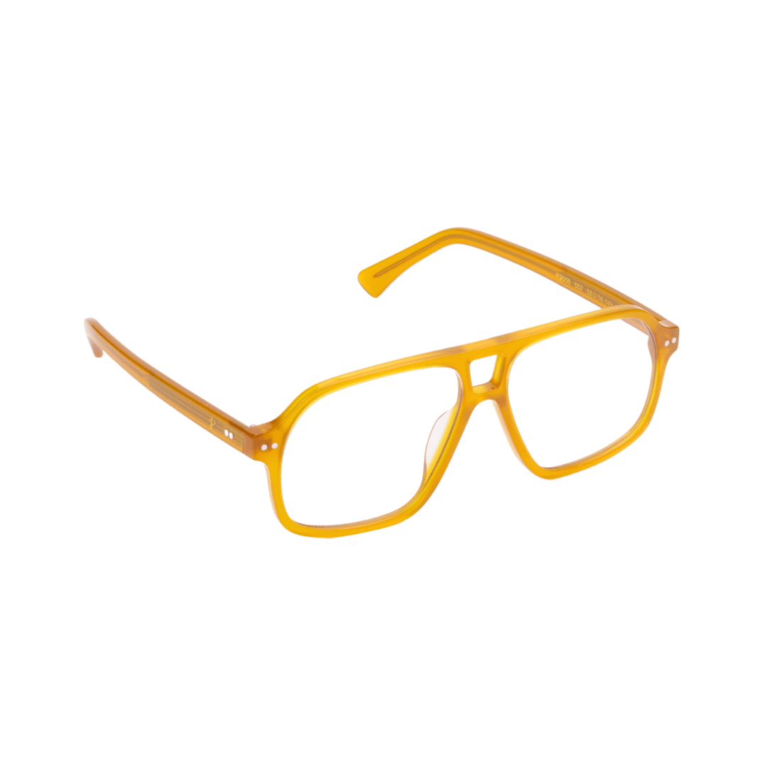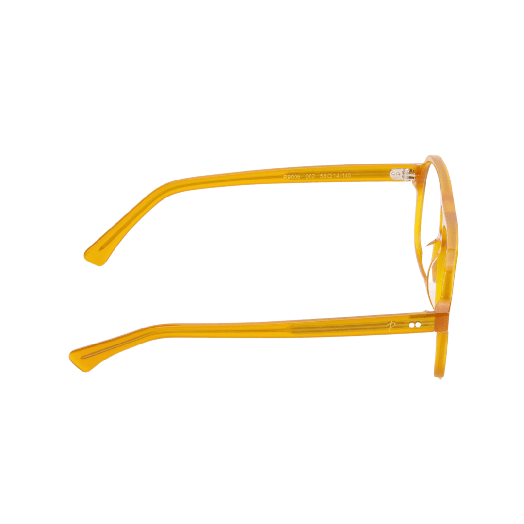 Alliez style et originalité avec ces lunettes Rafahyati, inspirées du design intemporel des aviateurs. Avec leur monture audacieuse en bio-acétate de haute qualité et leur teinte orange translucide, elles incarnent un look rétro revisité.