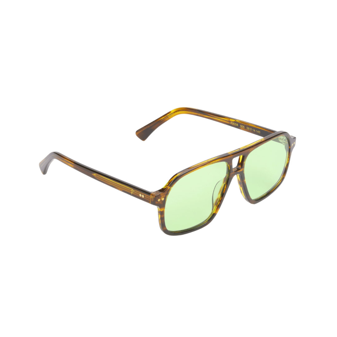 Associez style intemporel et protection ultime avec ces lunettes de soleil signées Rafahyati. Ce modèle, à la silhouette aviateur classique revisitée, apporte une touche d’élégance moderne grâce à sa monture écaille et ses verres verts sophistiqués.