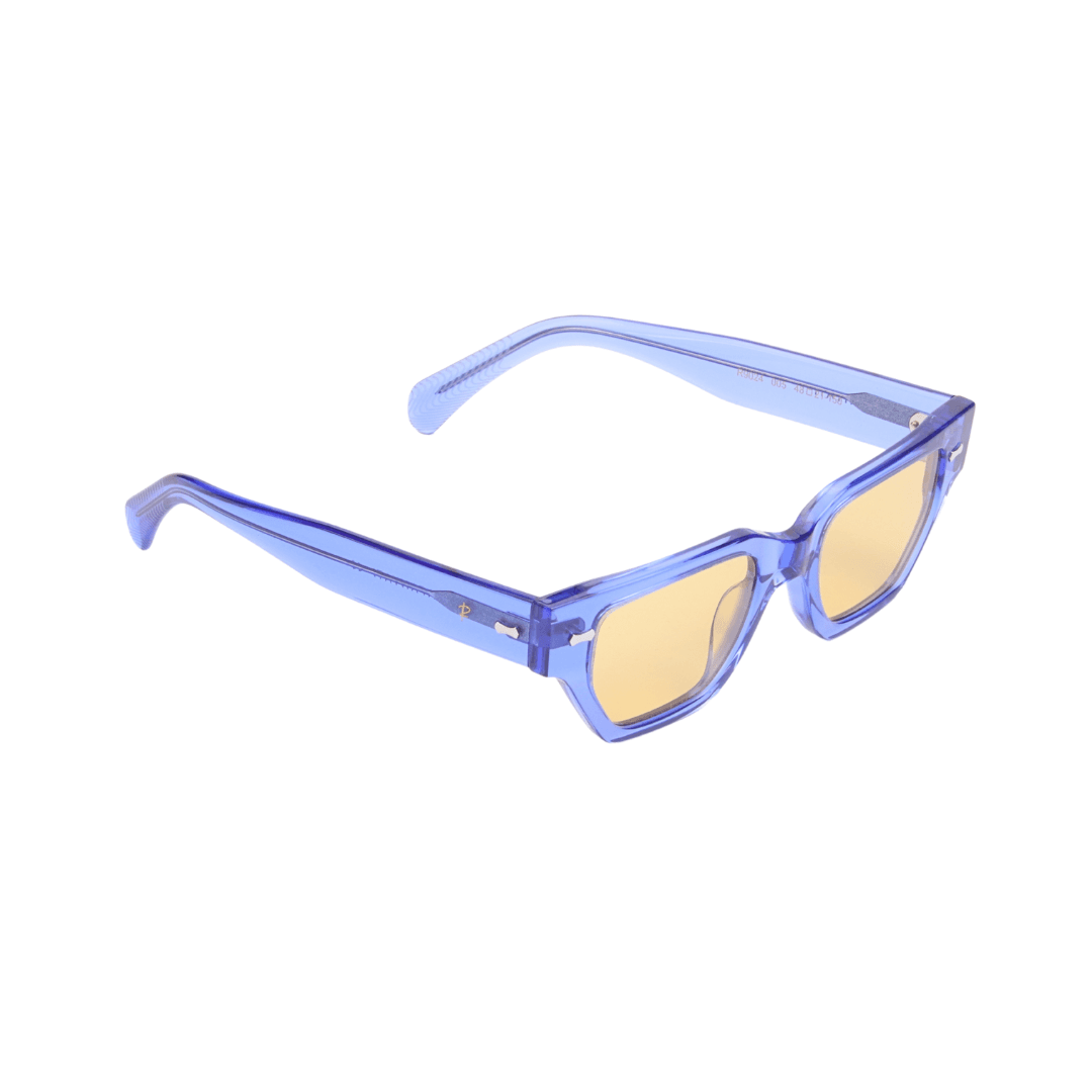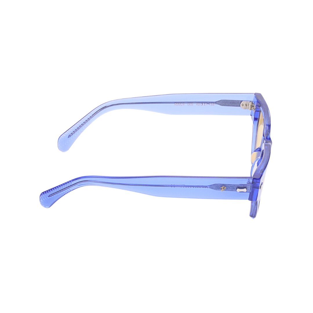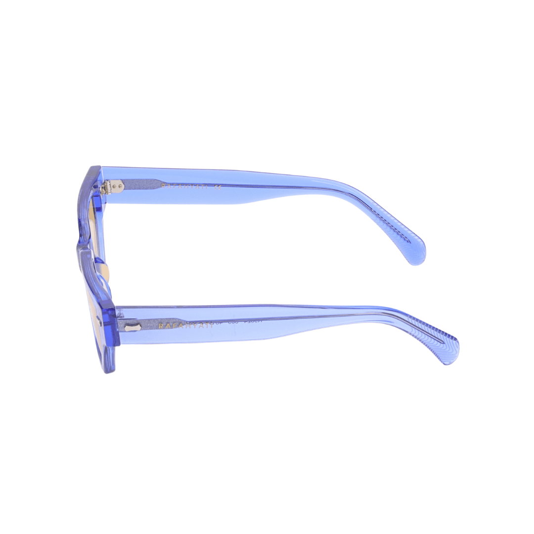 Adoptez un style audacieux et lumineux avec ces lunettes de soleil Rafahyati, alliant transparence et modernité. Leur monture rectangulaire en bio-acétate bleu translucide et leurs verres ambrés offrent une touche unique et sophistiquée.