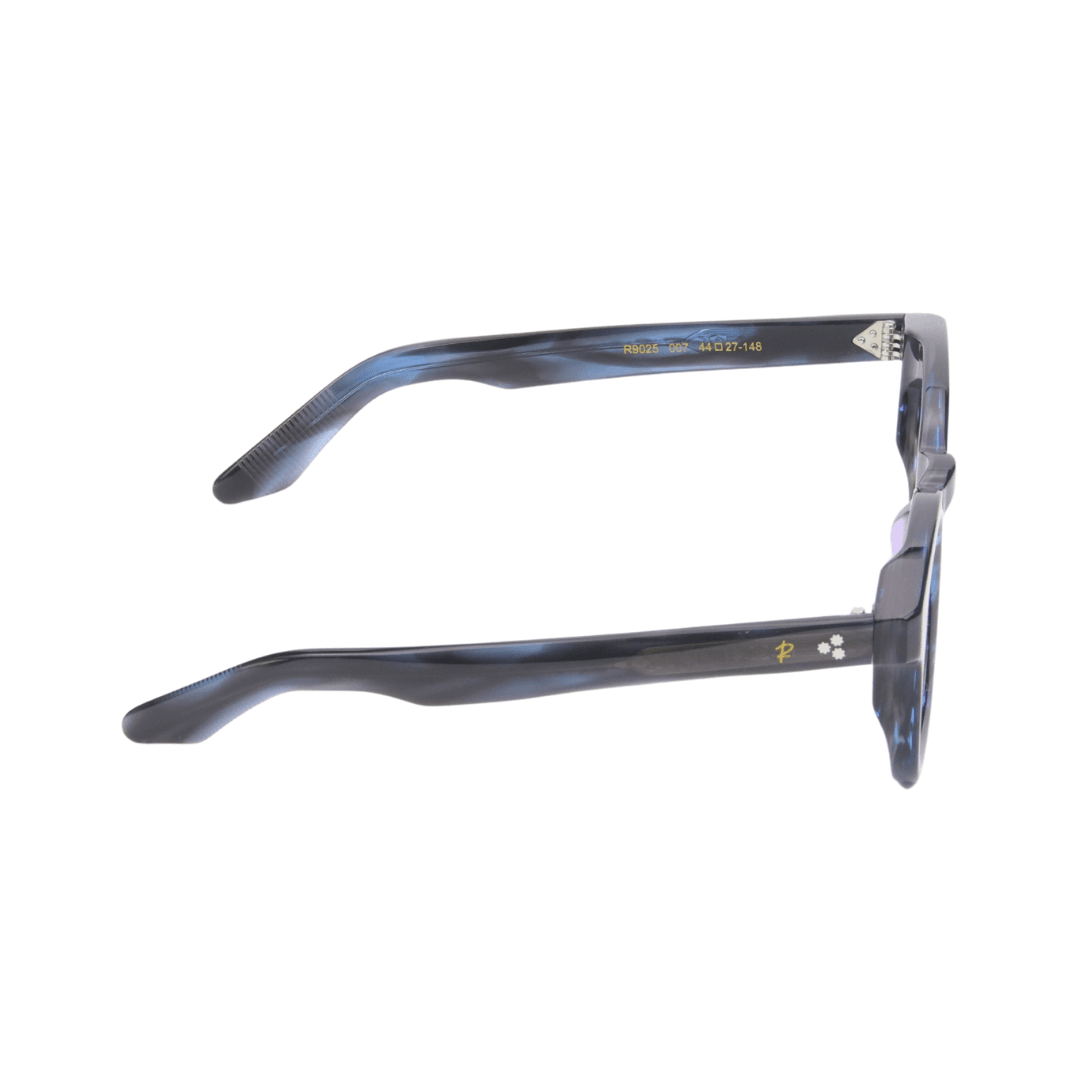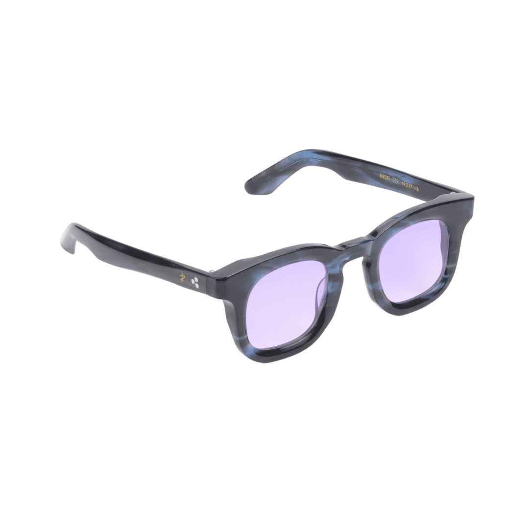Design : Forme carrée avec une monture marbrée aux nuances de bleu et de noir.